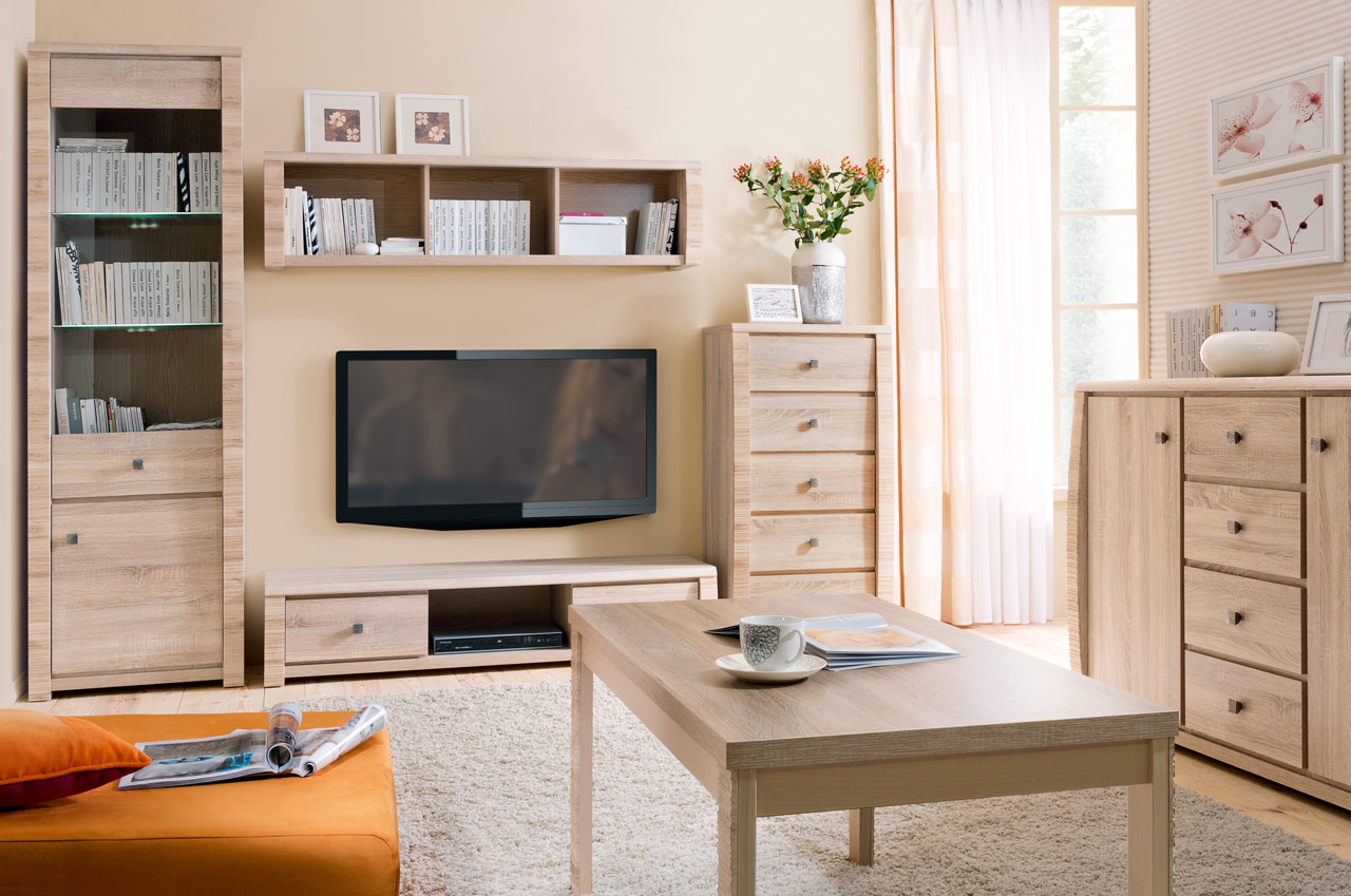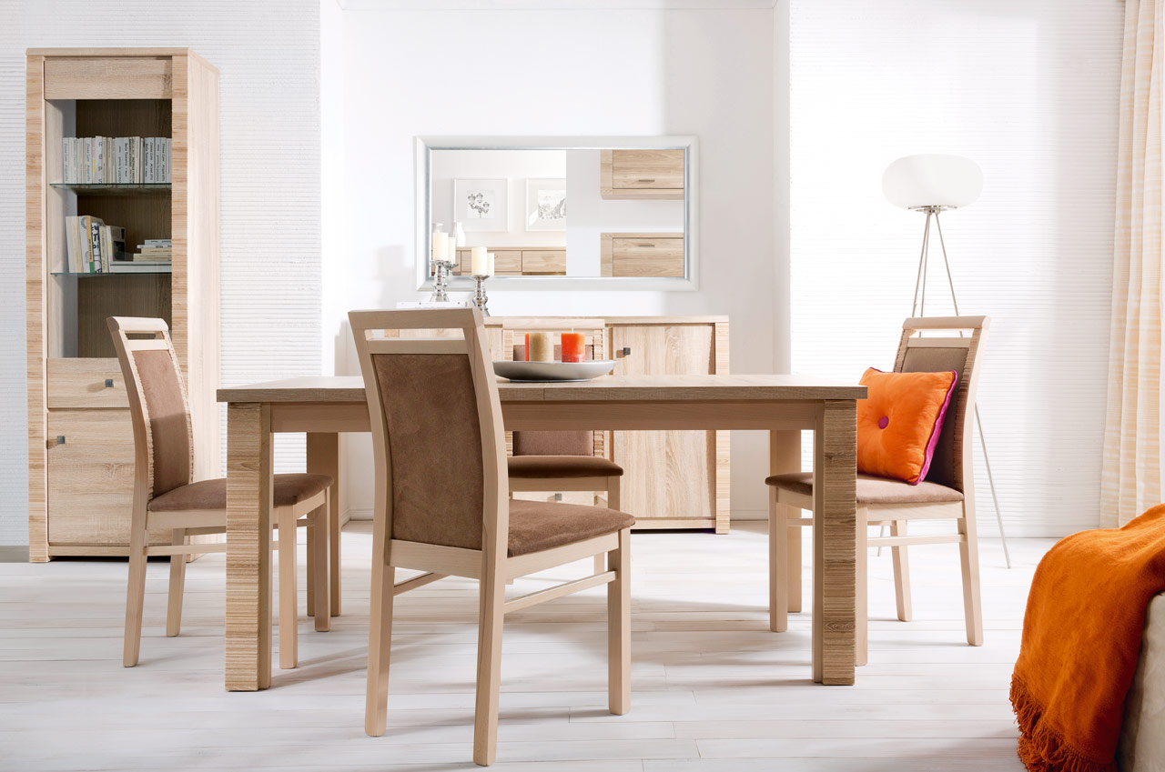 Dzięki 16 różnym elementom wchodzących w skład systemu modułowego Senegal urządzić można nowoczesne wnętrze pokoju dziennego wykorzystując regał, witrynę, szafkę rtv czy stolik okolicznościowy. W sypialni sprawdzi się szafa z szufladami lub lustrem, szafka nocna oraz łóżko z możliwością zamontowania tapicerowanej nakładki na wezgłowiu w dwóch kolorach do wyboru. W kolekcji Senegal znajdziemy również stół, krzesła oraz różnego typu komody i szafki idealne do urządzenia jadalni czy gabinetu. Poszczególne moduły można dowolnie ze sobą zestawiać, aranżując wnętrze według własnych potrzeb.