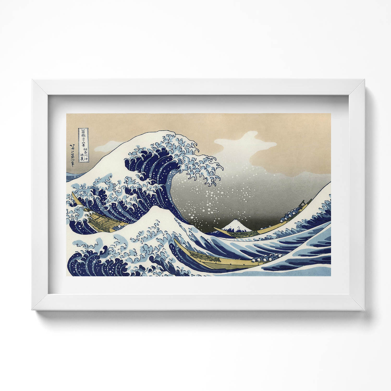 Obraz w białej ramie, Wielka fala w Kanagawie 30x20 cm