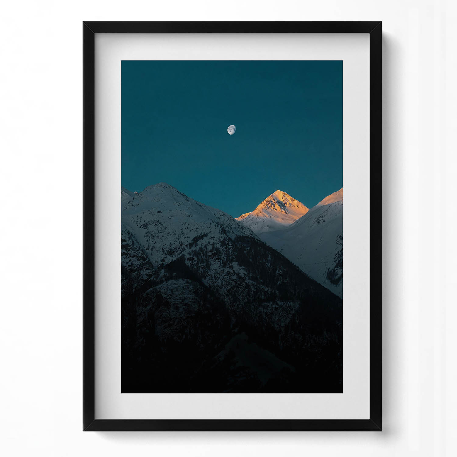 Obraz w czarnej ramie MDF, Górski zachód słońca, 50x70 cm