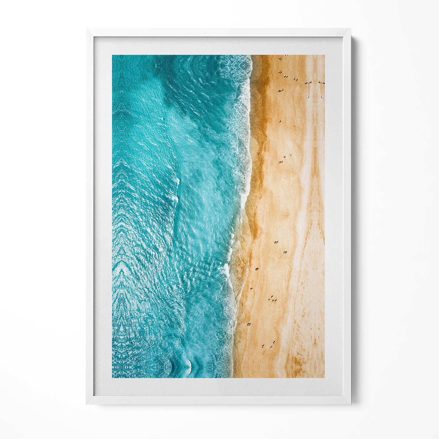 Obraz w ramie MDF - Morze plaża ludzie - Biała rama - 70x100