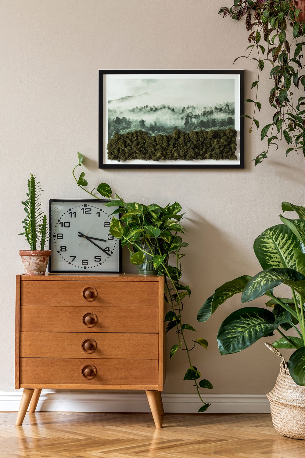 - Chrobotek nie potrzebuje słońca. Obraz można powiesić w pomieszczeniu bez dostępu do okien.