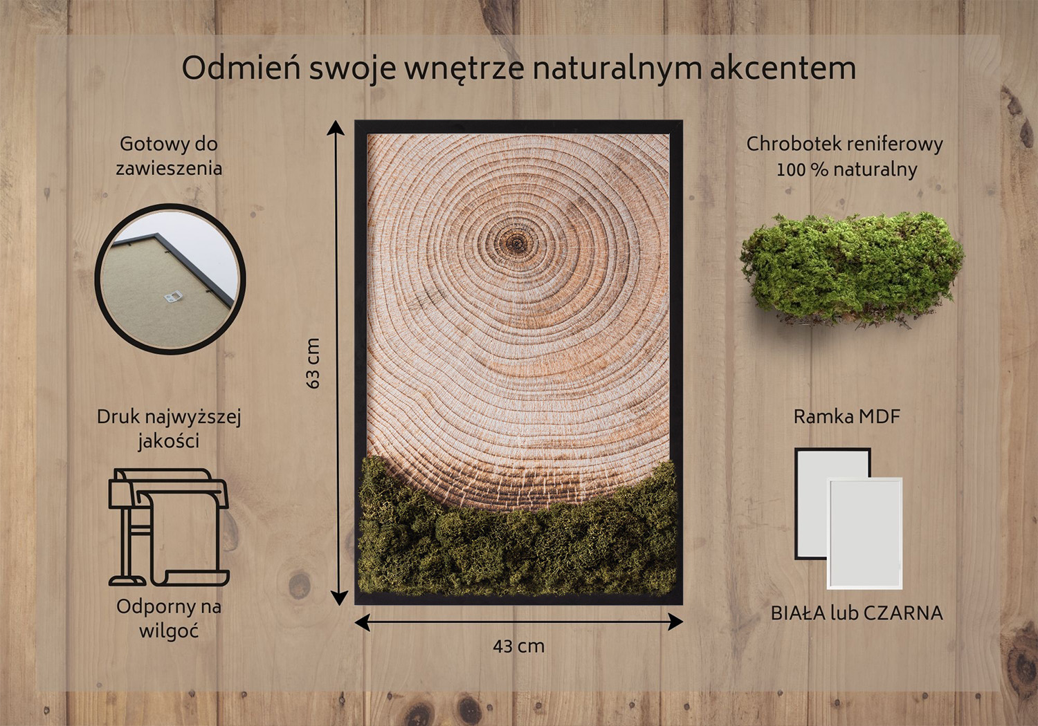 Obraz z mchem - Słoje drewna 40x60 cm Czarna Rama, 2478603