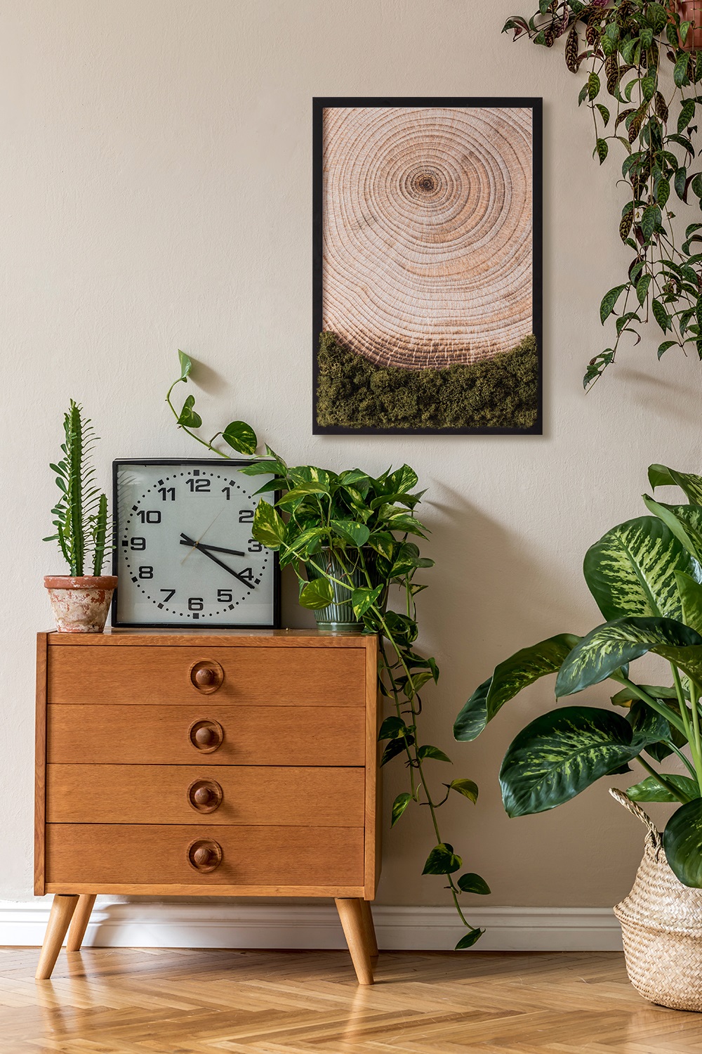 Obraz z mchem - Słoje drewna 40x60 cm Czarna Rama