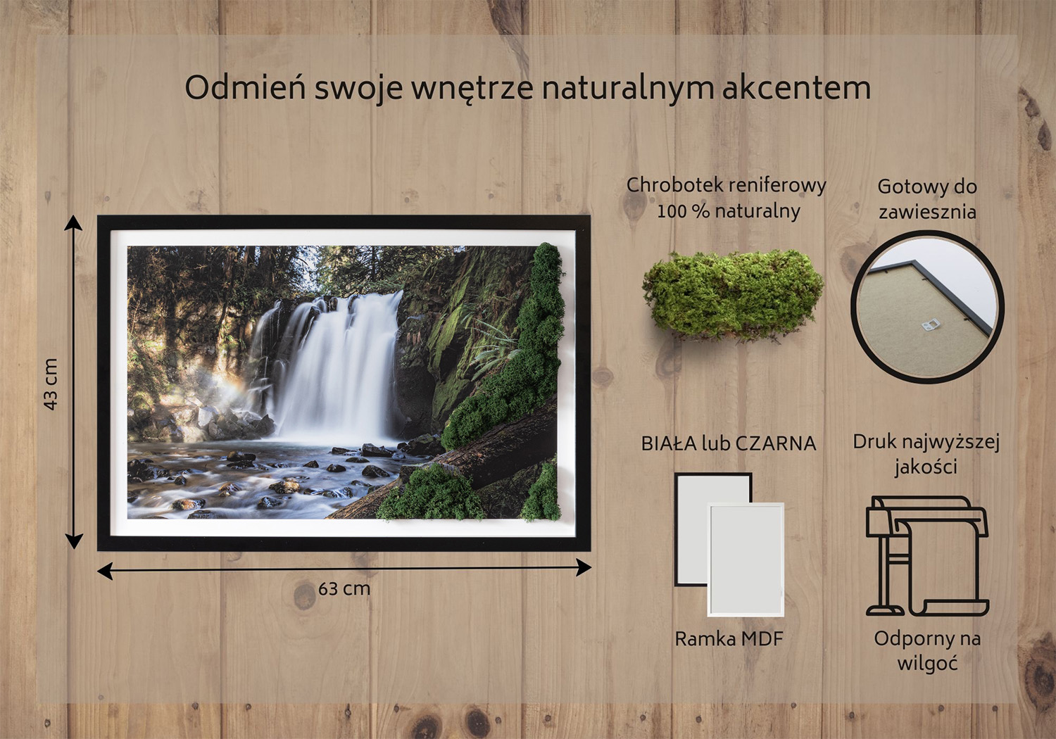 Obraz z mchem - Wodospad 60x40 cm Czarna Rama, 2478662