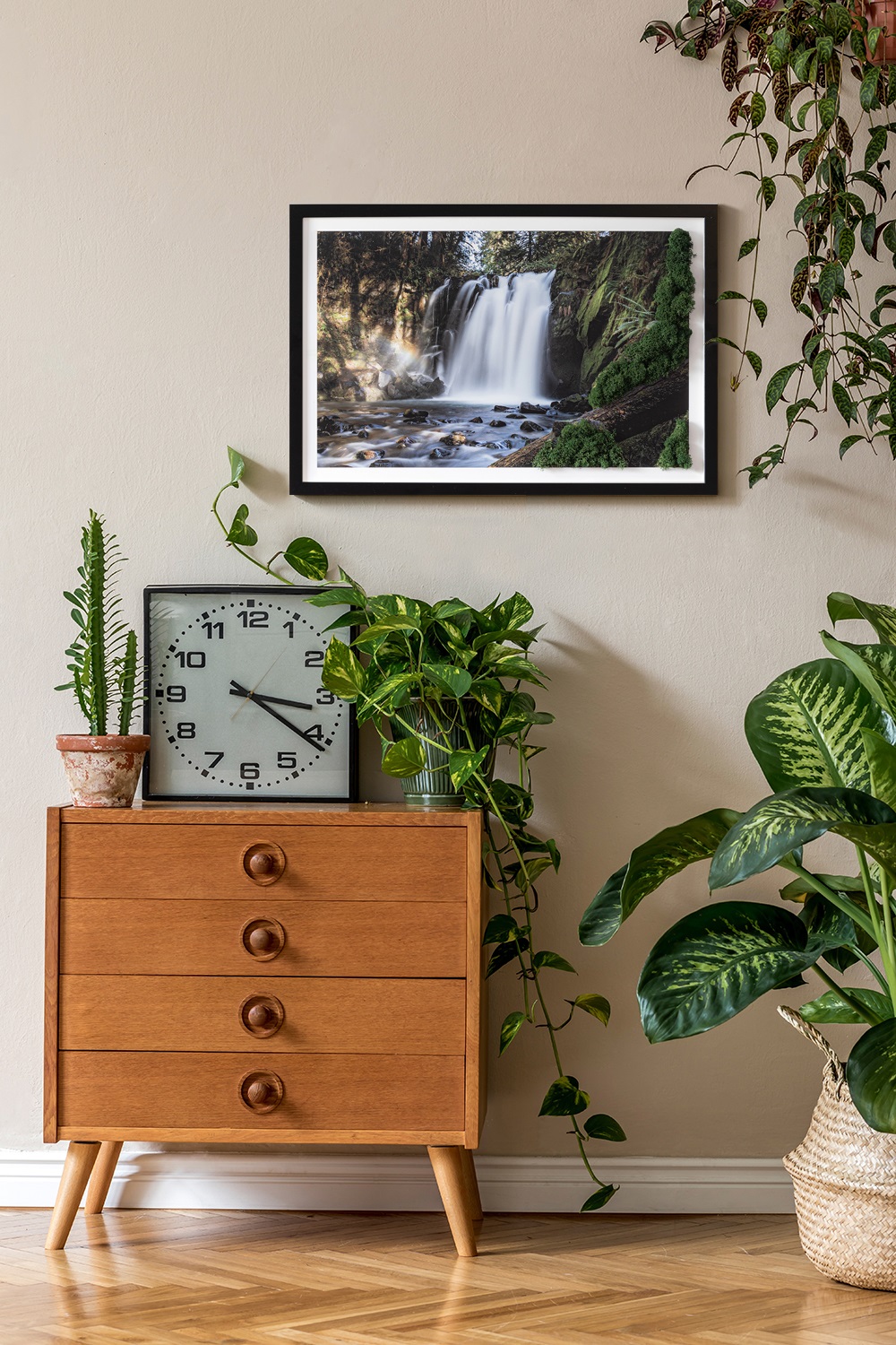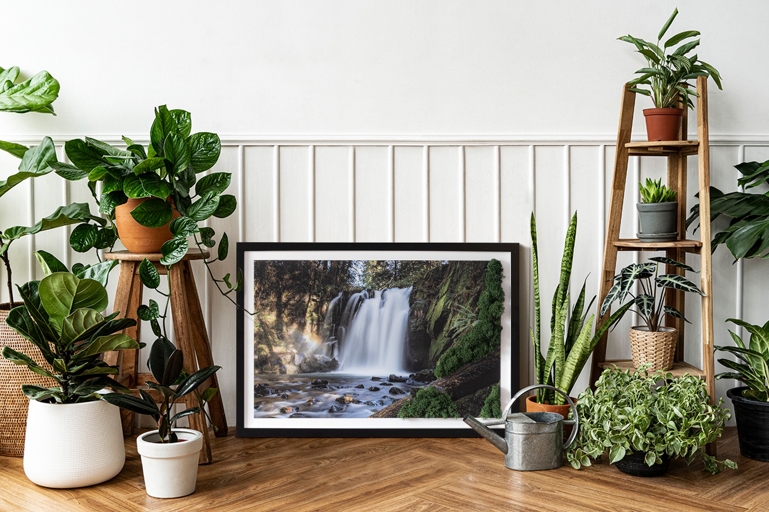 Obraz z mchem - Wodospad 60x40 cm Czarna Rama