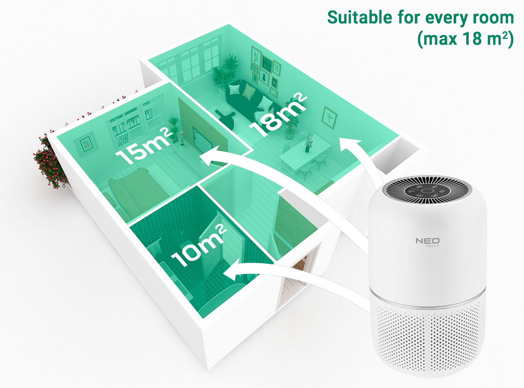 Oczyszczacz powietrza 32W, przepływ 150m3/h, powierzchnia 18 m2, NEO 90-121