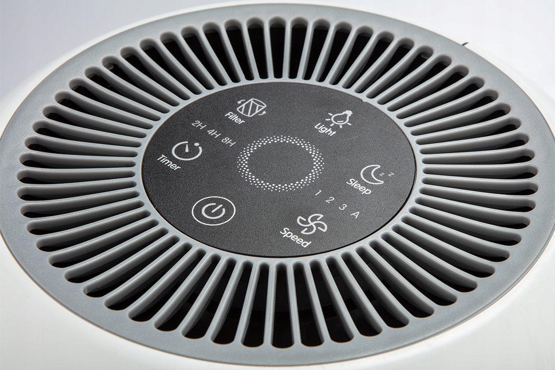 Wysoce wydajny filtr HEPA filtruje 99,97% drobnych cząsteczek kurzu, pyłków, roztoczy i zanieczyszczeń powietrza z PM 2.5. Filtr z węglem aktywnym neutralizuje niepożądane zapachy pochodzące z gotowania i palenia. Drobny filtr wstępny utrzymuje włosy, płatki i kłaczki na miejscu, zapewniając zdrowsze i czystsze powietrze w pomieszczeniach. Niska prędkość przy poziomie hałasu 30 dB zapewnia niezakłócony sen i odpoczynek. Przy dużej prędkości i umiarkowanej głośności, powietrze w pomieszczeniu jest oczyszczane skuteczniej. Sterowanie poprzez panel dotykowy ze wskaźnikami jakości powietrza i zużycia filtra. Działa efektywnie na powierzchni do 18 m2