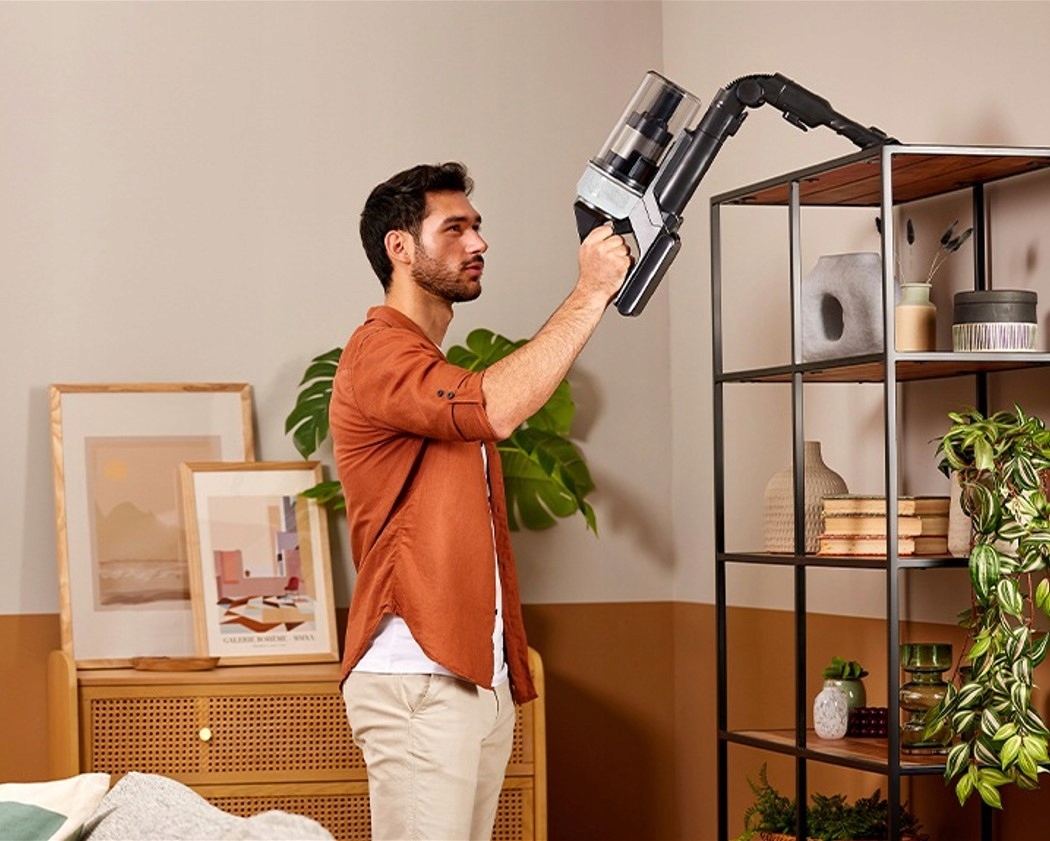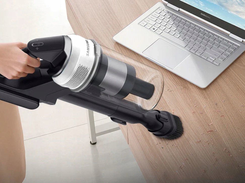 Sprzątanie domu bez wysiłku dzięki łatwemu manewrowaniu i obsłudze. Lekka konstrukcja zapewnia maksymalną użyteczność i zmniejsza obciążanie nadgarstków. Korpus odkurzacza ręcznego waży zaledwie 1,44 kg i jest o 11% lżejszy od konwencjonalnych odkurzaczy Samsung. Można więc łatwo posprzątać wszystkie pomieszczenia, w tym krzesła i sofy, szafki i stoły, rolety okienne oraz powierzchnie pod urządzeniami domowymi, jak również schody.