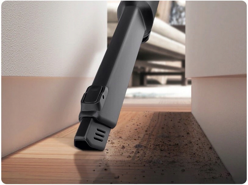 Ułatwia odkurzanie wąskich przestrzeni, np. za szafą lub kanapą. Opcja wydłużenia do 43 cm pozwala dotrzeć w trudno dostępne zakamarki.