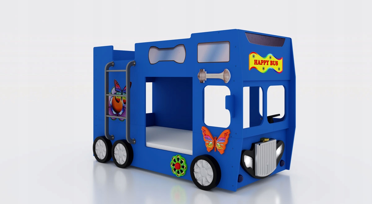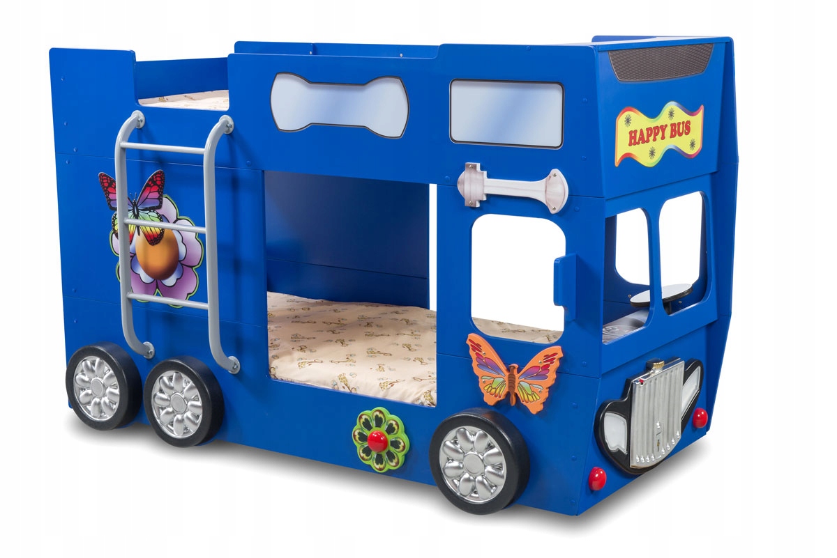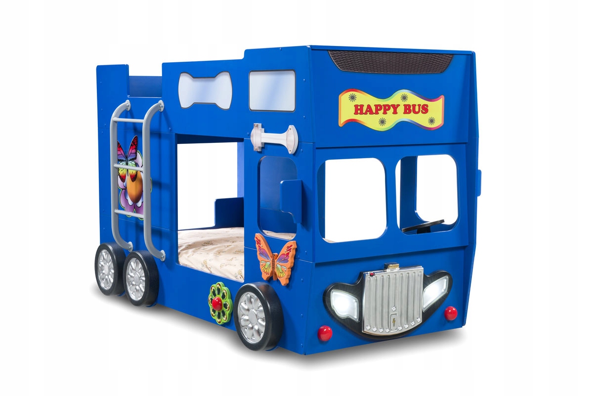 - Happy bus to piętrowe łóżko dziecięce doskonałe do wspólnego pokoju dla rodzeństwa.