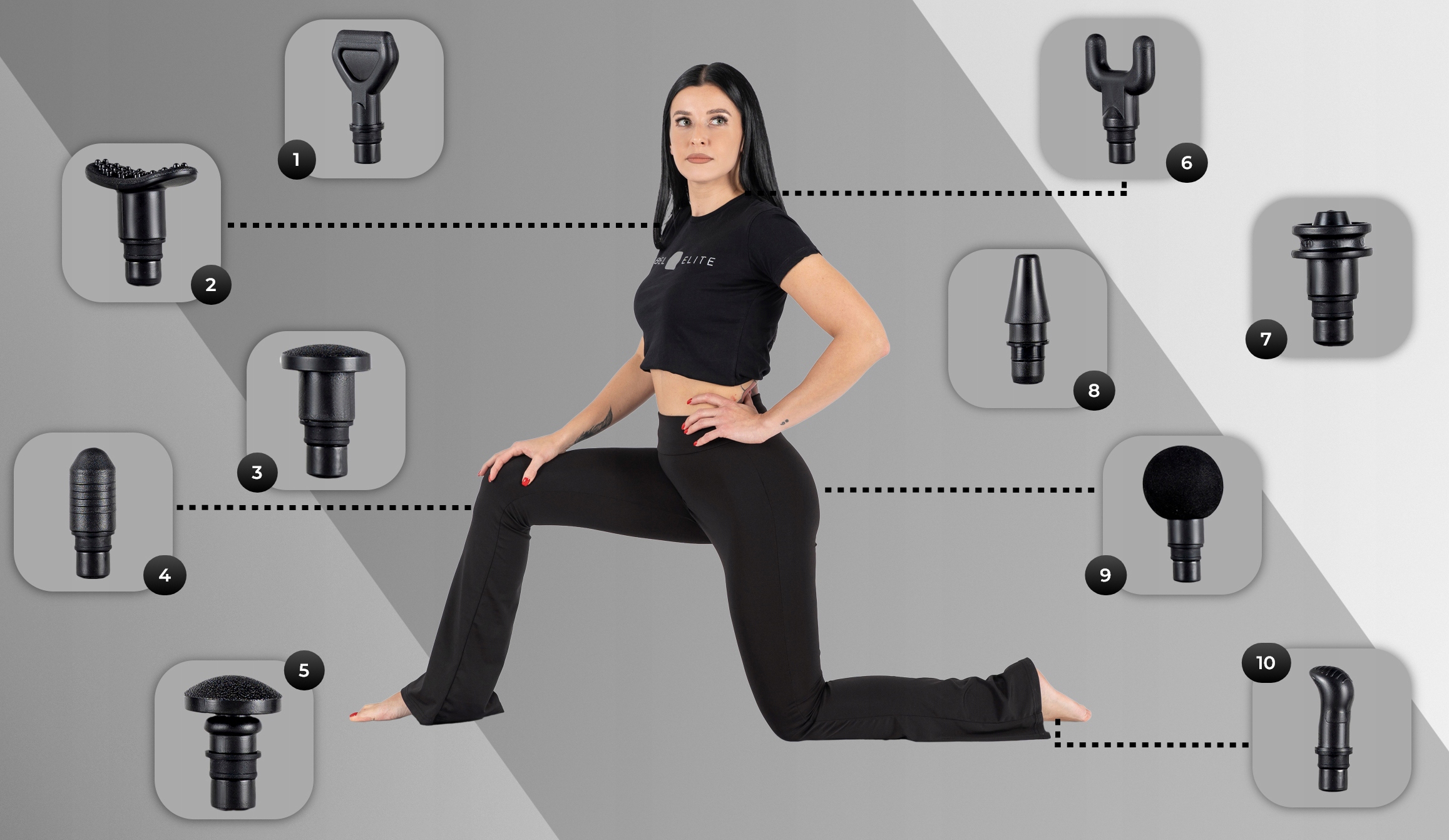 Pistolet do Masażu ELITE ME-MG06 - Masażer Do Ciała 10 Końcówek + 2 GRATIS