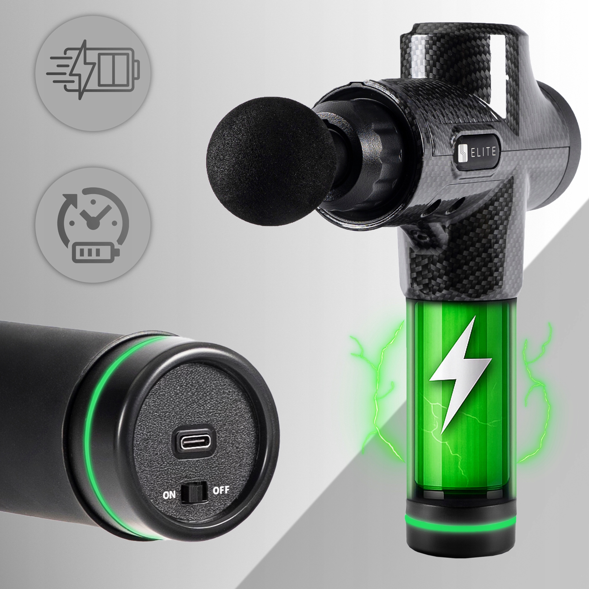 Nie daj się zaskoczyć rozładowaną baterią! Pistolet do masażu ELITE ME-MG09 został wyposażony w wydajny akumulator oraz nowoczesne złącze USB-C, dzięki czemu możesz go naładować tą samą ładowarką, której używasz do telefonu. To ogromna przewaga nad wieloma modelami konkurencji, które wymagają dedykowanych zasilaczy – tutaj wystarczy zwykły kabel USB-C, by w krótkim czasie przywrócić urządzenie do pełnej mocy.