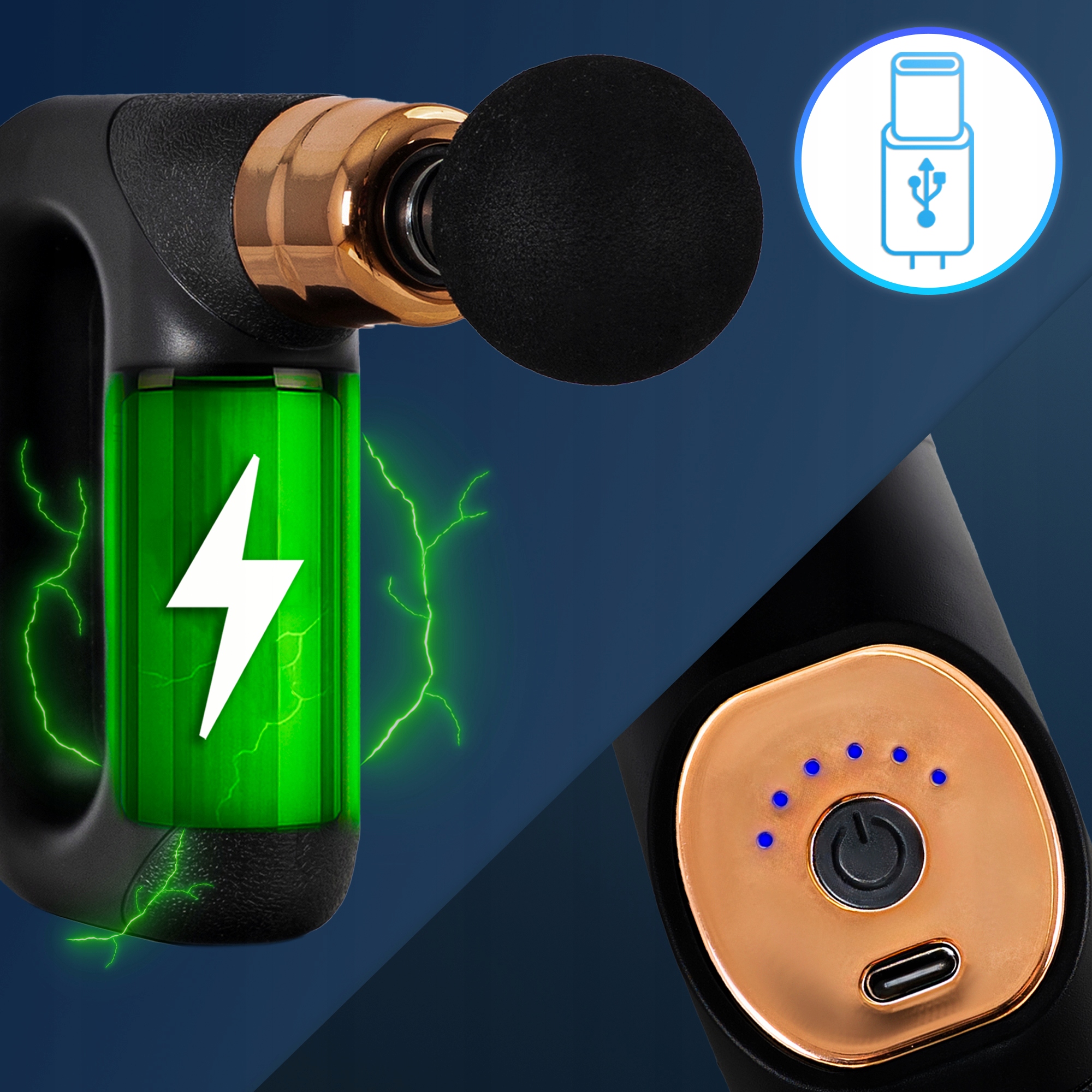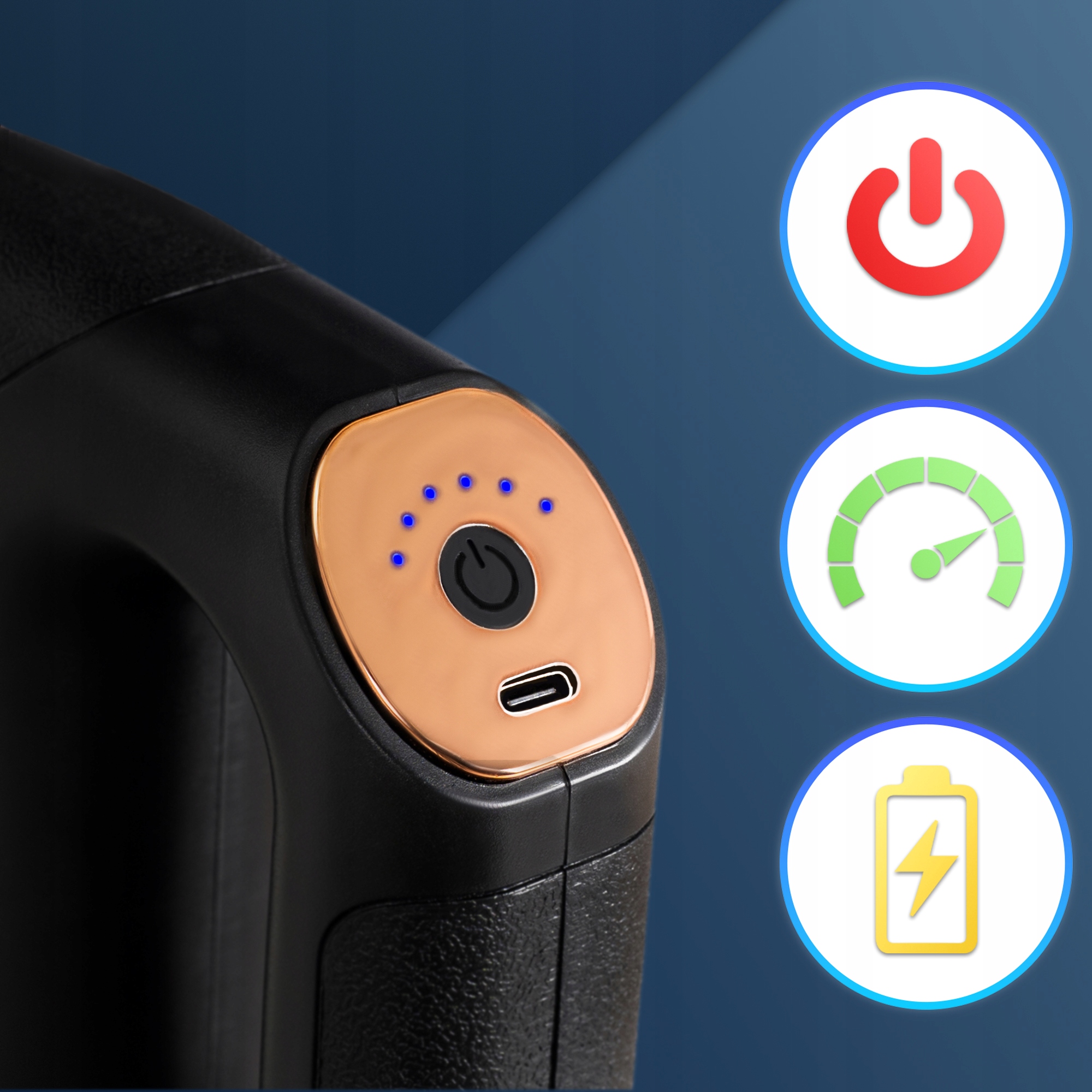 Dzięki ładowaniu przez USB-C możesz naładować urządzenie praktycznie wszędzie – tą samą ładowarką, której używasz do telefonu, powerbankiem czy laptopem. Nie musisz zabierać dodatkowych kabli, co sprawia, że pistolet idealnie sprawdzi się w podróży, w pracy i na treningu.