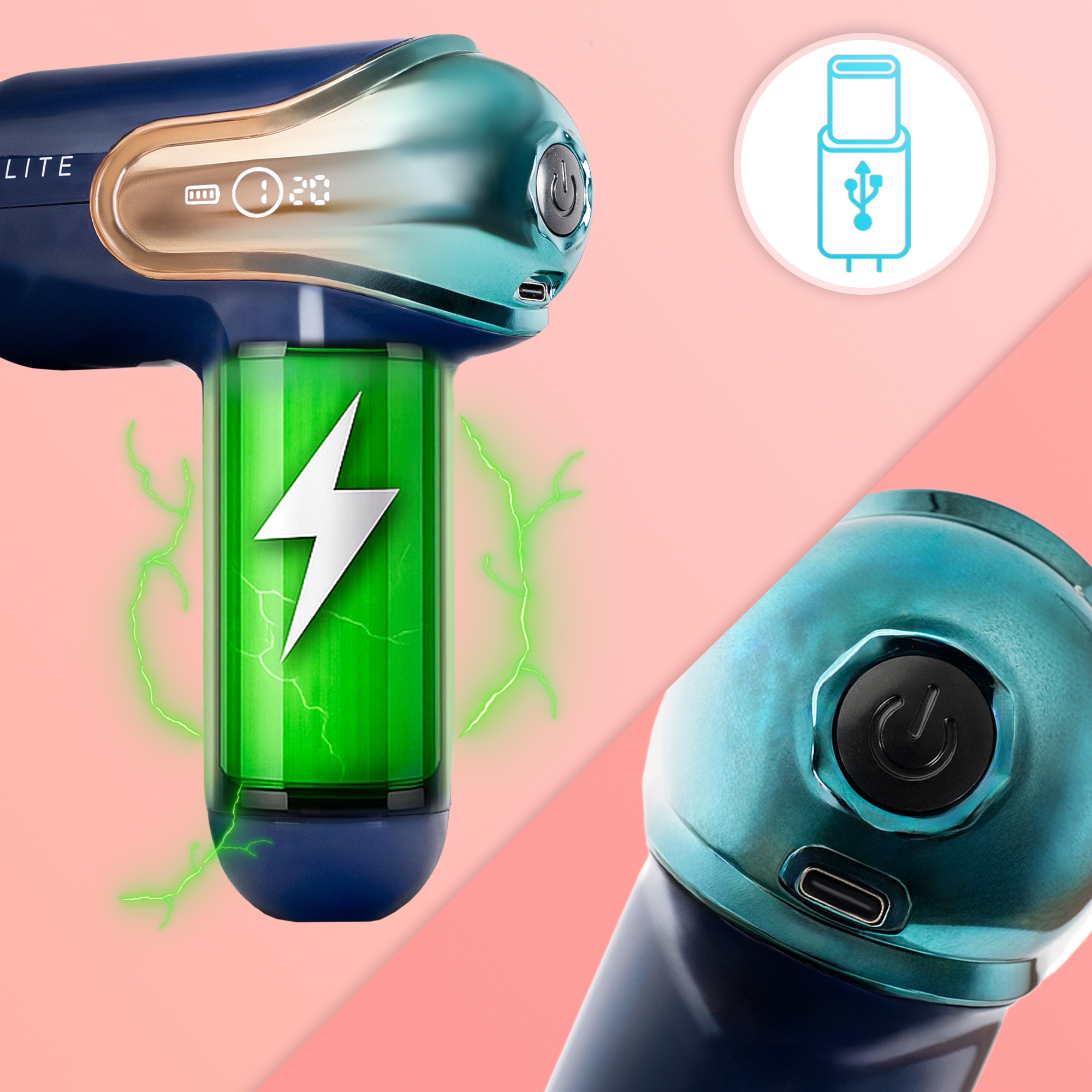 Dzięki ładowaniu przez USB-C możesz naładować urządzenie praktycznie wszędzie – tą samą ładowarką, której używasz do telefonu, powerbankiem czy laptopem. Nie musisz zabierać dodatkowych kabli, co sprawia, że pistolet idealnie sprawdzi się w podróży, w pracy i na treningu.
