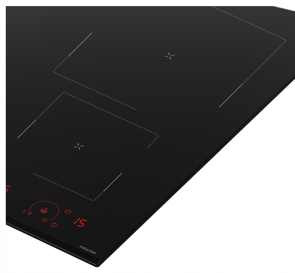 - Konfiguracja palników: 4 pola indukcyjne (1 strefa IndyFlex™)