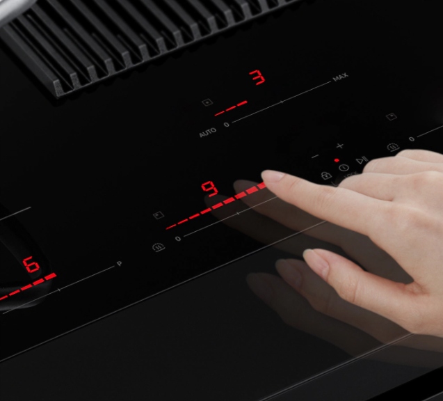 Dotykowa regulacja mocy typu slider pozwala szybko i precyzyjnie kontrolować temperaturę gotowania. Wystarczy przesunąć palcem wzdłuż regulatora, aby natychmiast włączyć lub zmienić poziom mocy w każdej strefie. Po prostu przeciągnij palcem po wyświetlaczu LED, by jednym ruchem dostosować temperaturę. Dzięki 9 poziomom możesz zrobić to szybko i precyzyjnie.