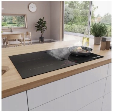 Płyta indukcyjna Bosch Serie 4 PVS811B16E o szerokości 80 cm integruje funkcję wyciągu, skutecznie eliminując opary i zapachy bez potrzeby dodatkowego okapu. Wyposażona w technologię PowerBoost, umożliwia szybsze gotowanie, a dzięki funkcji CombiZone pozwala na łączenie dwóch pól grzewczych w jedną strefę, co zwiększa elastyczność podczas gotowania.