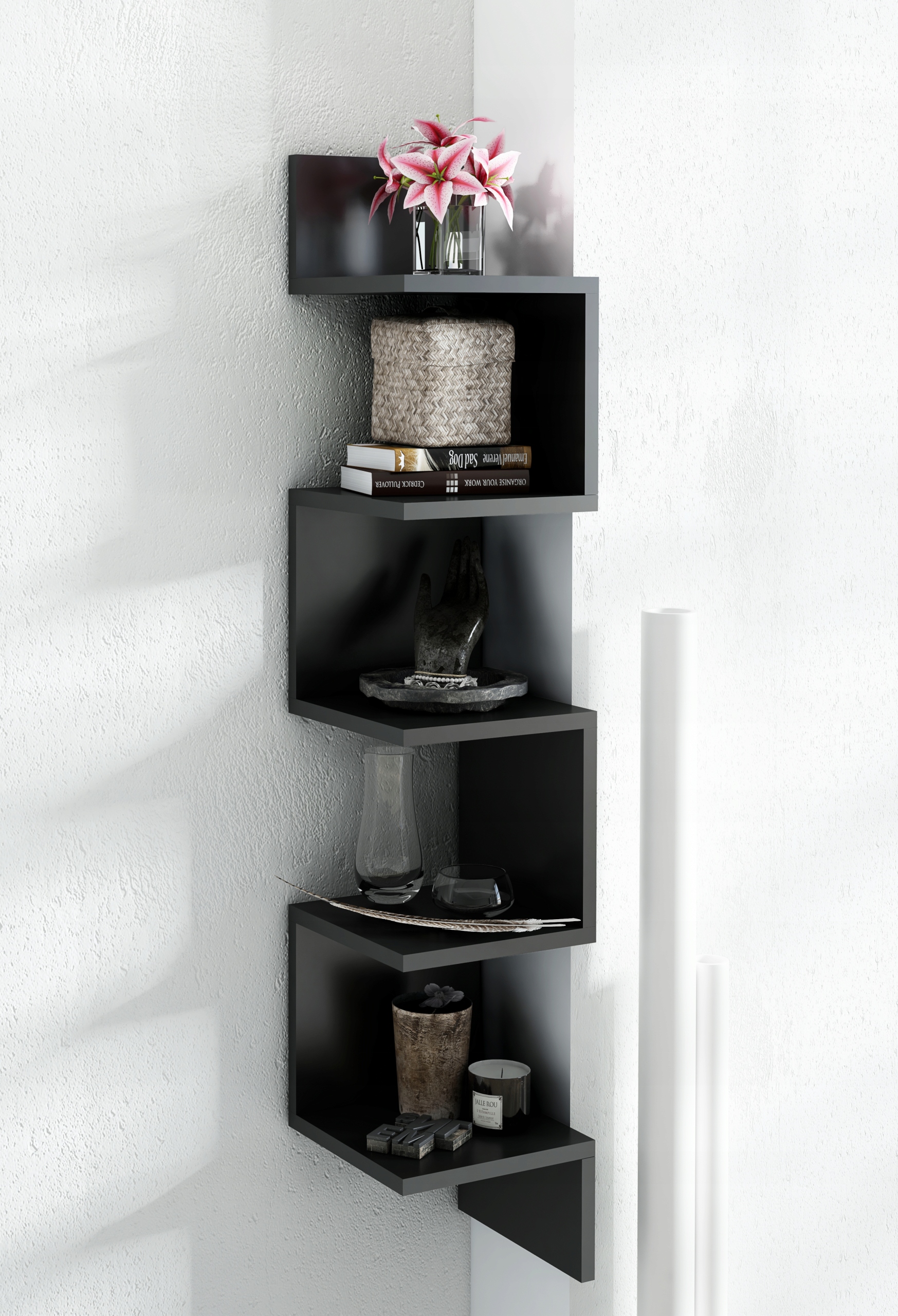 Półka Wisząca Narożna Na Książki Doniczki Pascal Czarny Mat, 2166097