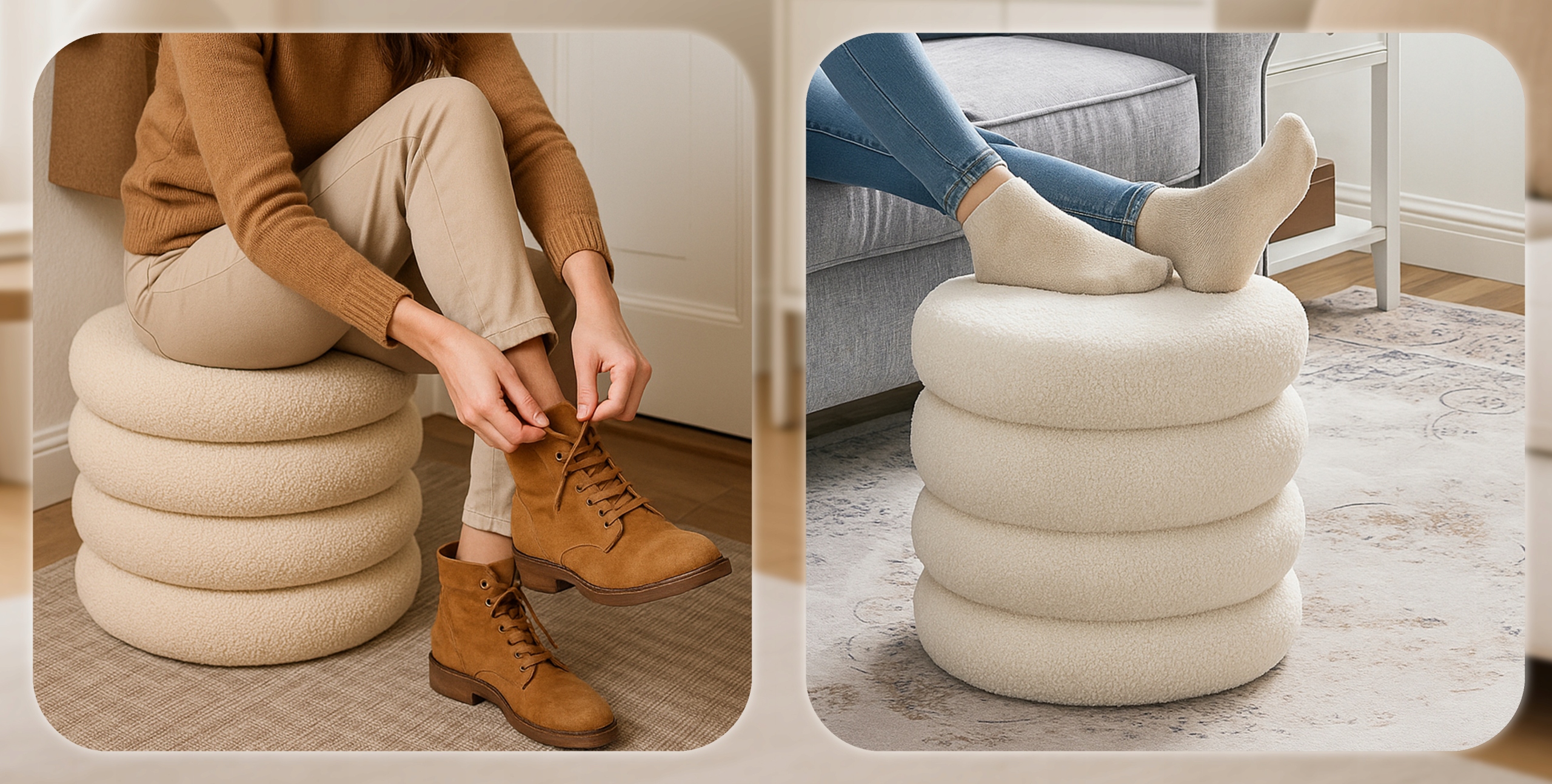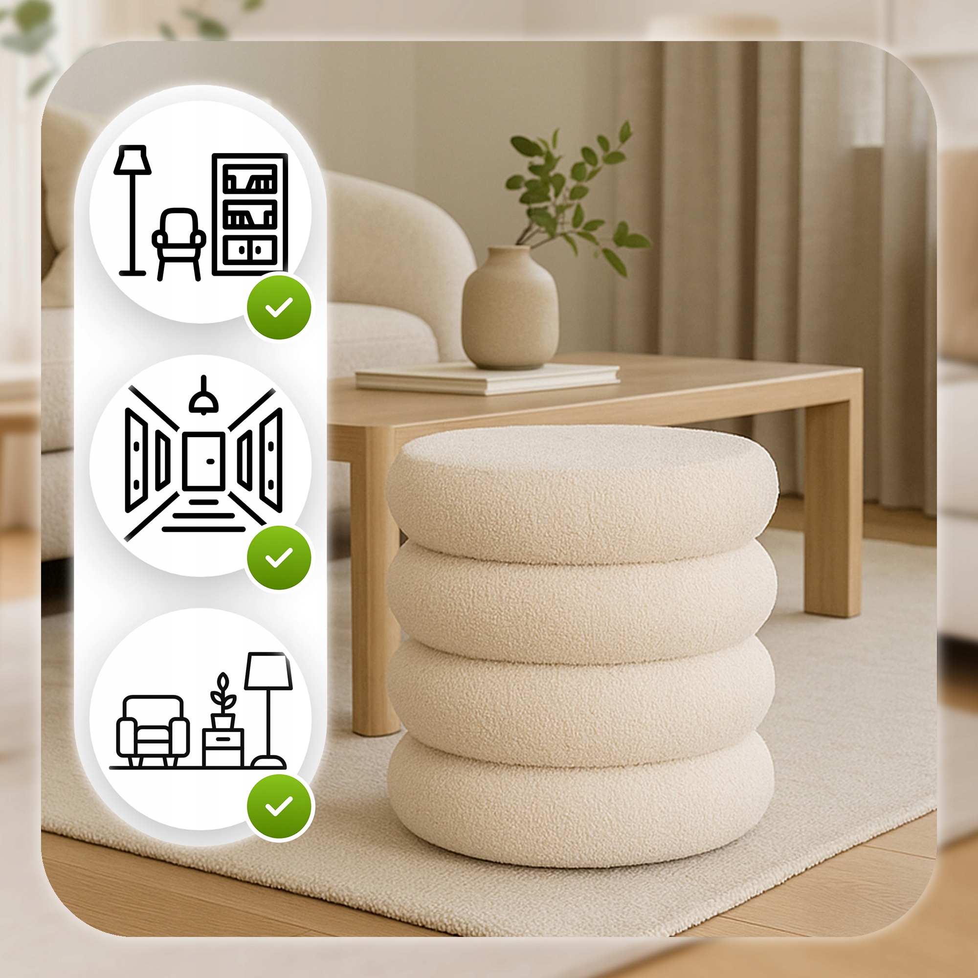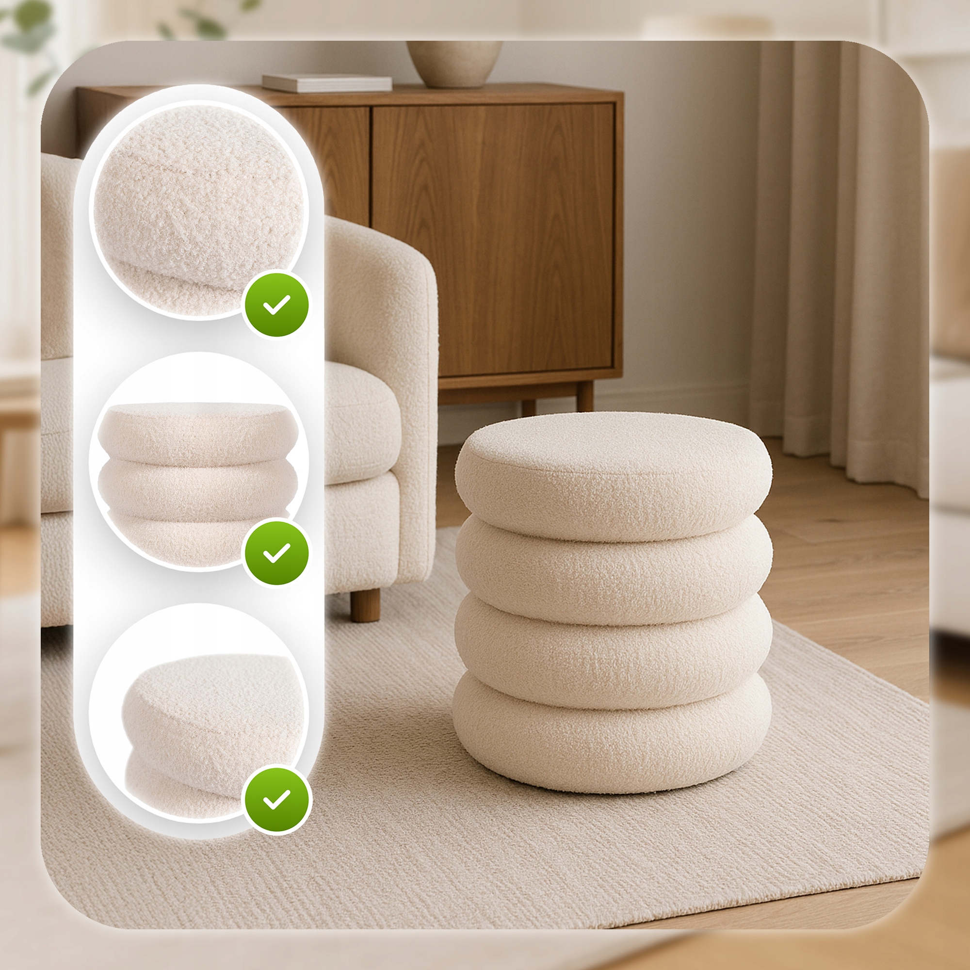 Pufa Siedzisko Do Przedpokoju Toaletki Teddy Puf Kremowa ROSSA ✨