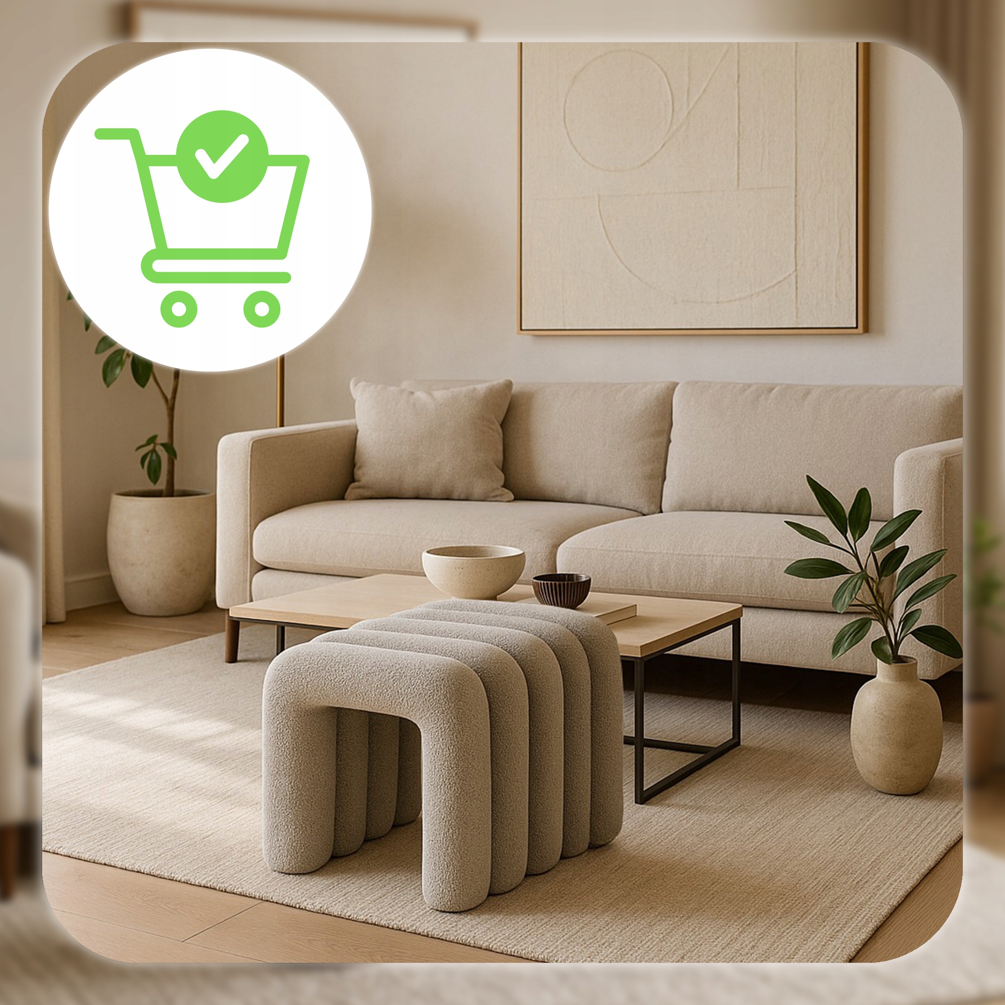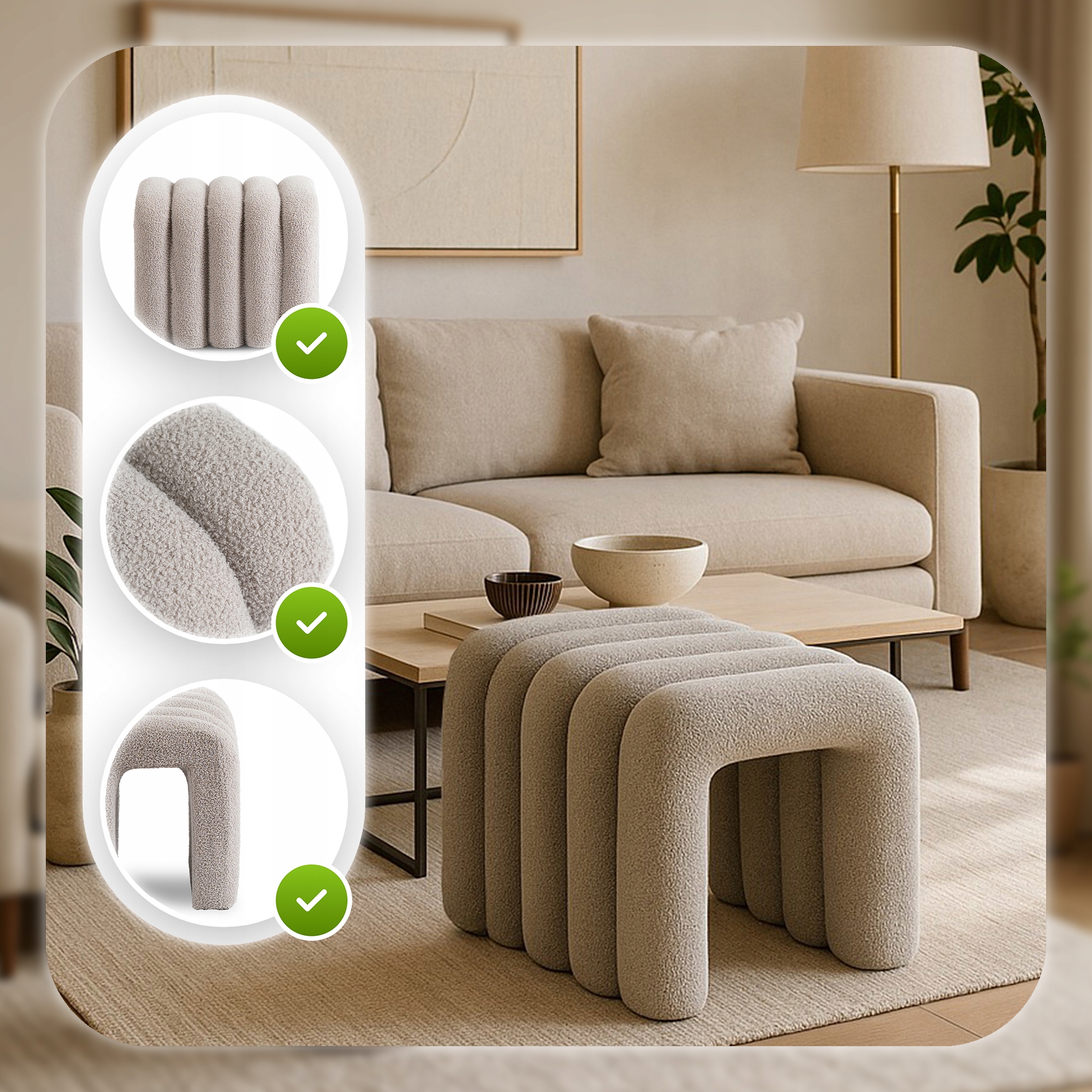 • Miękka tkanina boucle – wyjątkowo przyjemna w dotyku i elegancka, dodaje wnętrzu klasy i nowoczesnego charakteru.