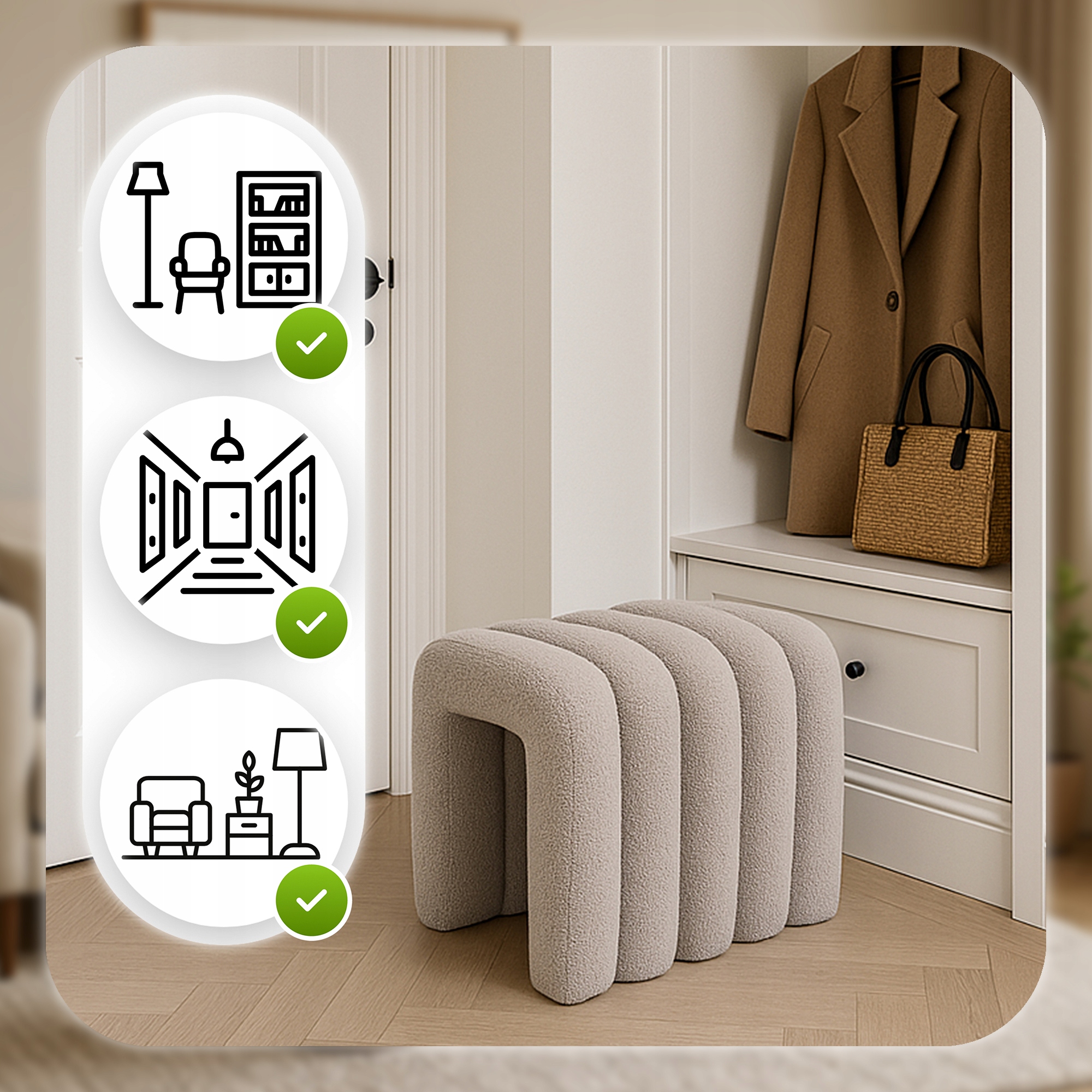 • W przedpokoju – jako wygodne siedzisko przy zakładaniu butów oraz stylowy dodatek, który od razu przyciąga wzrok gości.