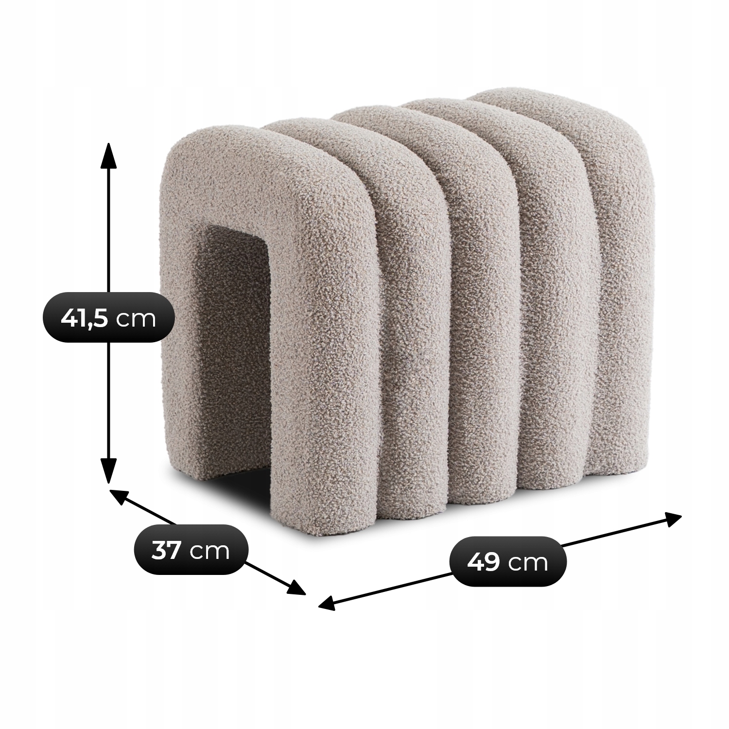 PIKSEL to nowoczesna pufa w kolorze szarym, która zachwyca swoim oryginalnym, falistym kształtem. Dzięki kompaktowym wymiarom 41,5 cm wysokości, 37 cm głębokości i 49 cm szerokości, idealnie wpasuje się w różne wnętrza – salon, sypialnię czy przedpokój. Miękka, przyjemna w dotyku tkanina boucle sprawia, że jest nie tylko wygodna, ale także elegancka. To praktyczny i designerski dodatek, który świetnie sprawdzi się jako siedzisko, podnóżek lub element dekoracyjny.
