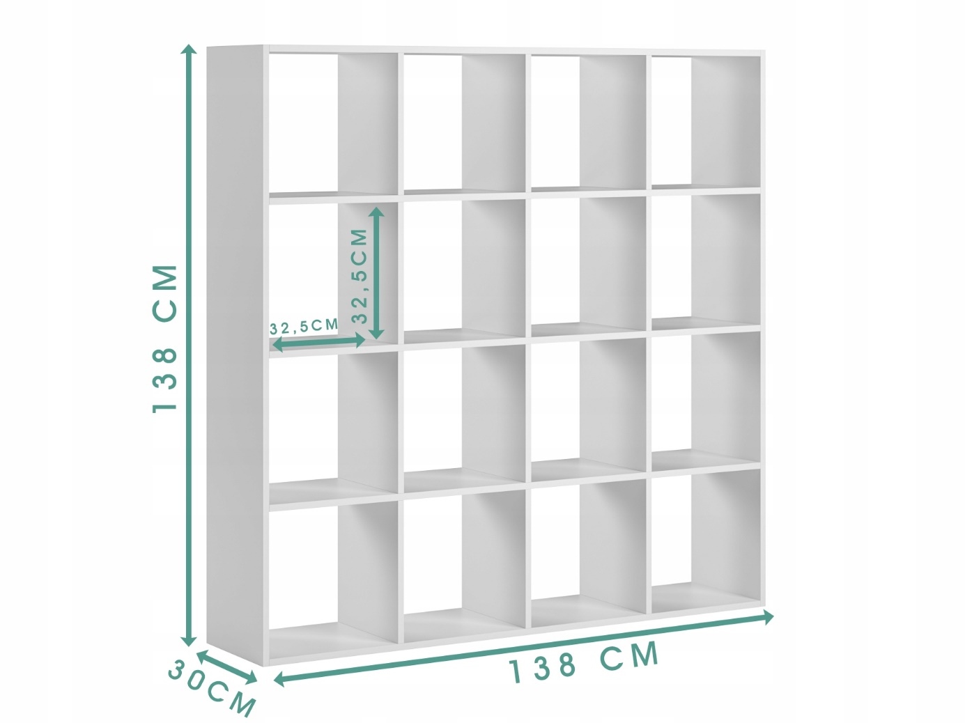 Duży Regał Hipokrates 16 Półek 138 x 138 x 30 cm – Na Książki i Segregatory