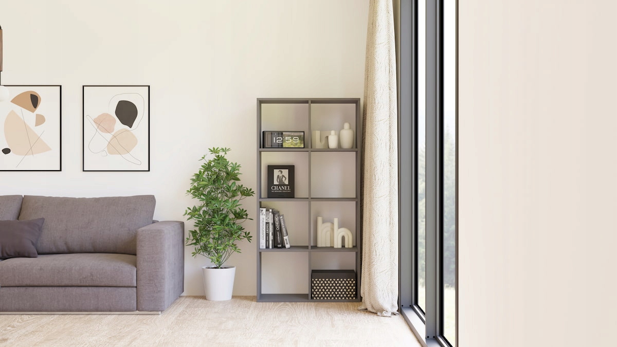Regał można ustawić zarówno pionowo, jak i poziomo – pasuje do wysokich wnętrz oraz pomieszczeń ze skosami. Jego lekka forma i klasyczny design sprawiają, że łatwo wkomponuje się w aranżację każdego rodzaju przestrzeni.