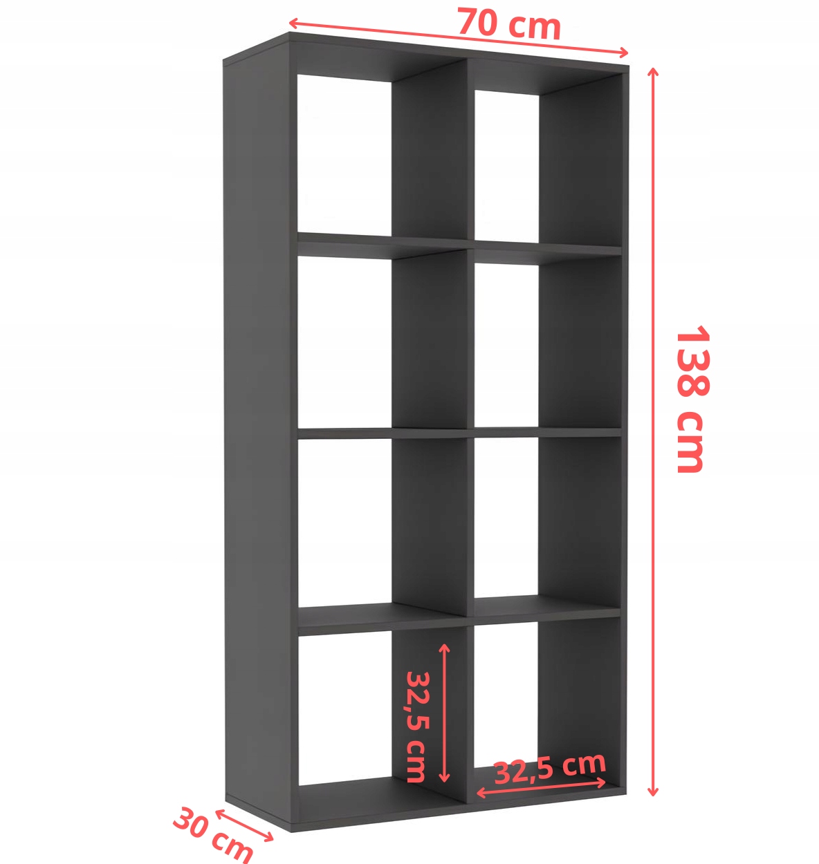 ✅ Duża pojemność – 8 półek umożliwia przechowywanie książek, segregatorów, dekoracji i dokumentów.