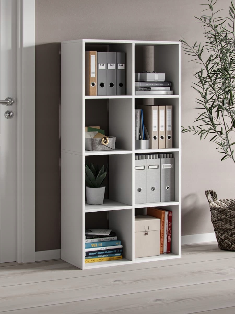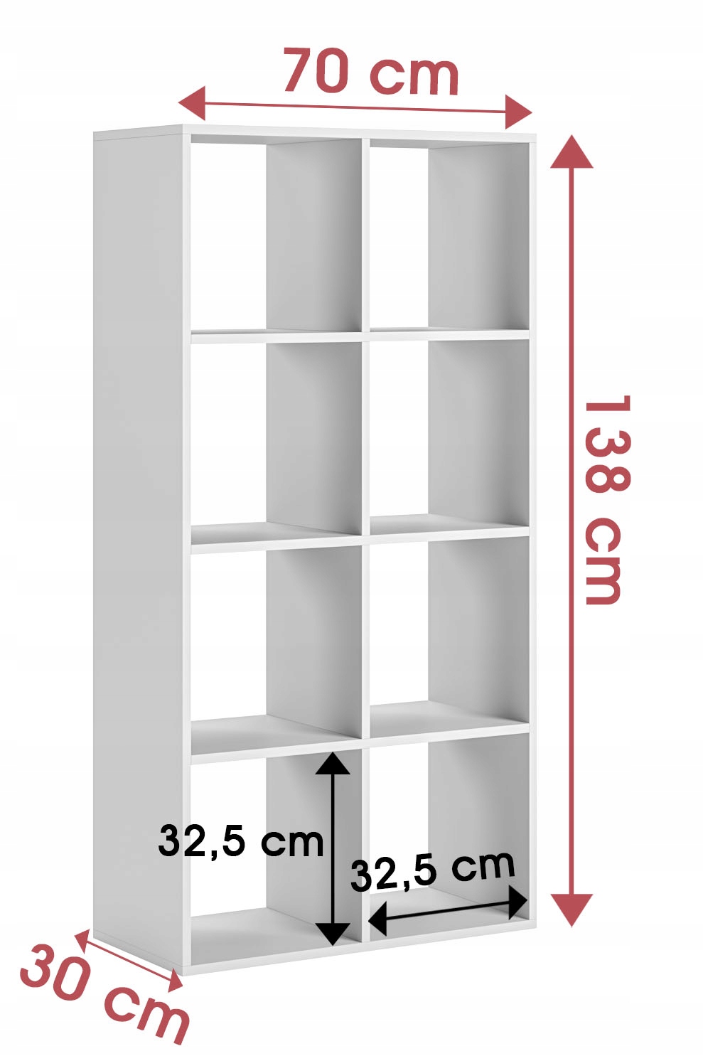 Duża pojemność – 8 półek umożliwia przechowywanie książek, segregatorów, dekoracji i dokumentów.