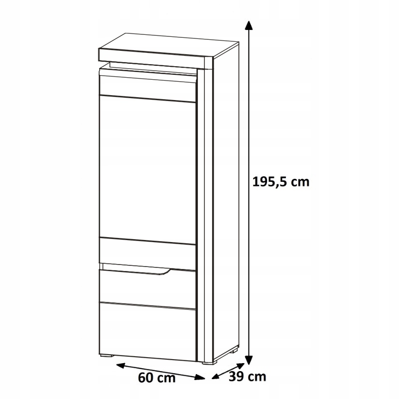 - Wymiary: 60 × 39 × 195 cm (szer. × gł. × wys.)