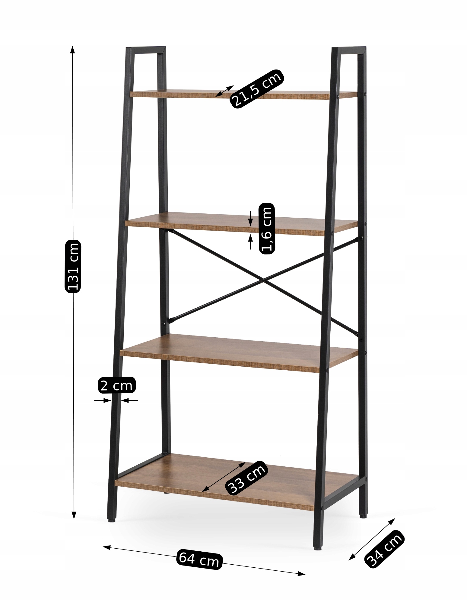 Produkt posiada solidną konstrukcję, jest stabilny i wytrzymały. Półki wykonane są z wysokiej jakości płyty MDF z warstwą laminatu i obrzeżami ABS. Szkielet regału jest metalowy i pomalowany metodą proszkową na kolor matowej czerni.