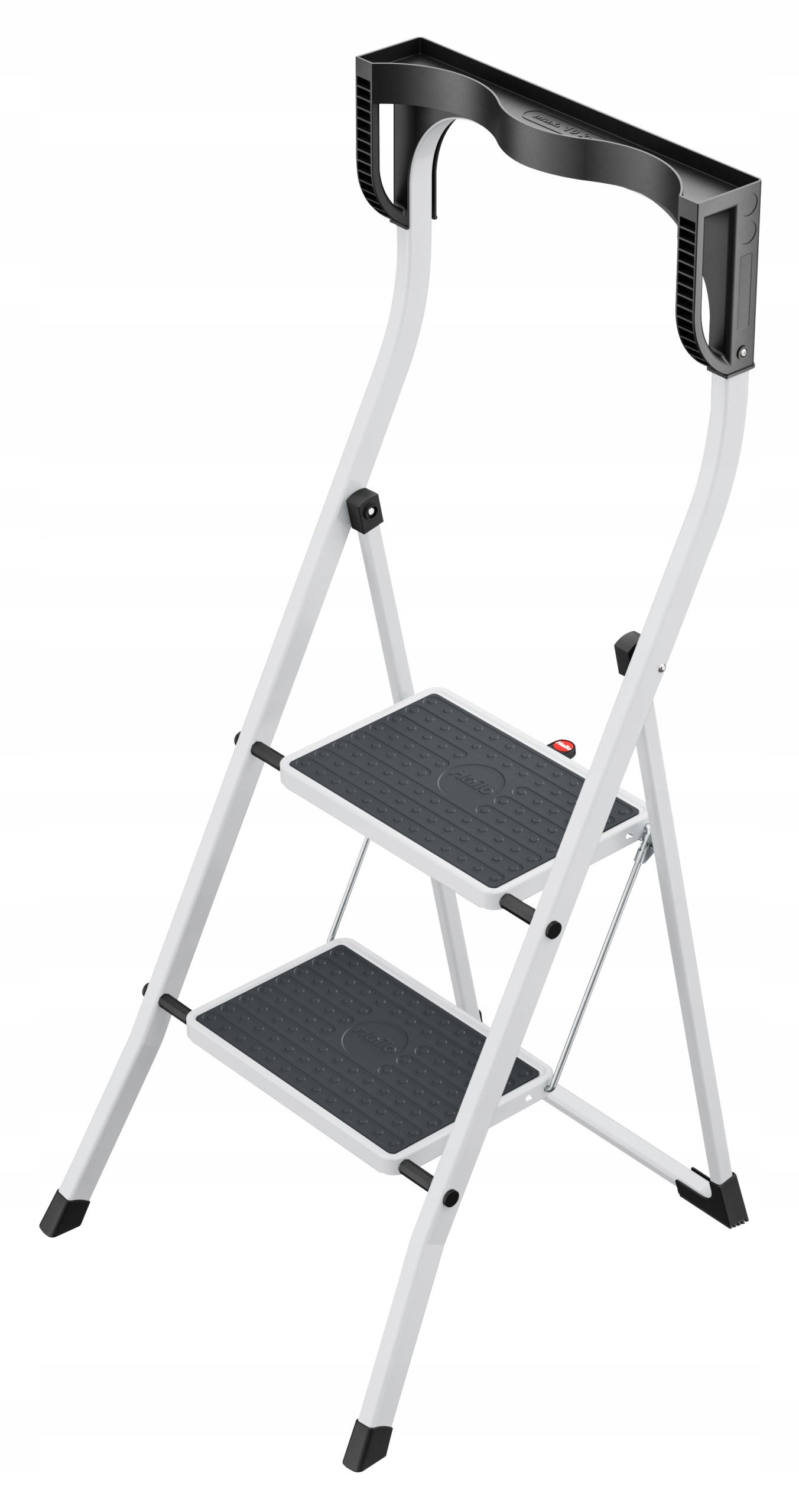 Ergonomiczne składana drabinka domowa z wysokim uchwytem bezpieczeństwa i praktycznym przybornikiem.
