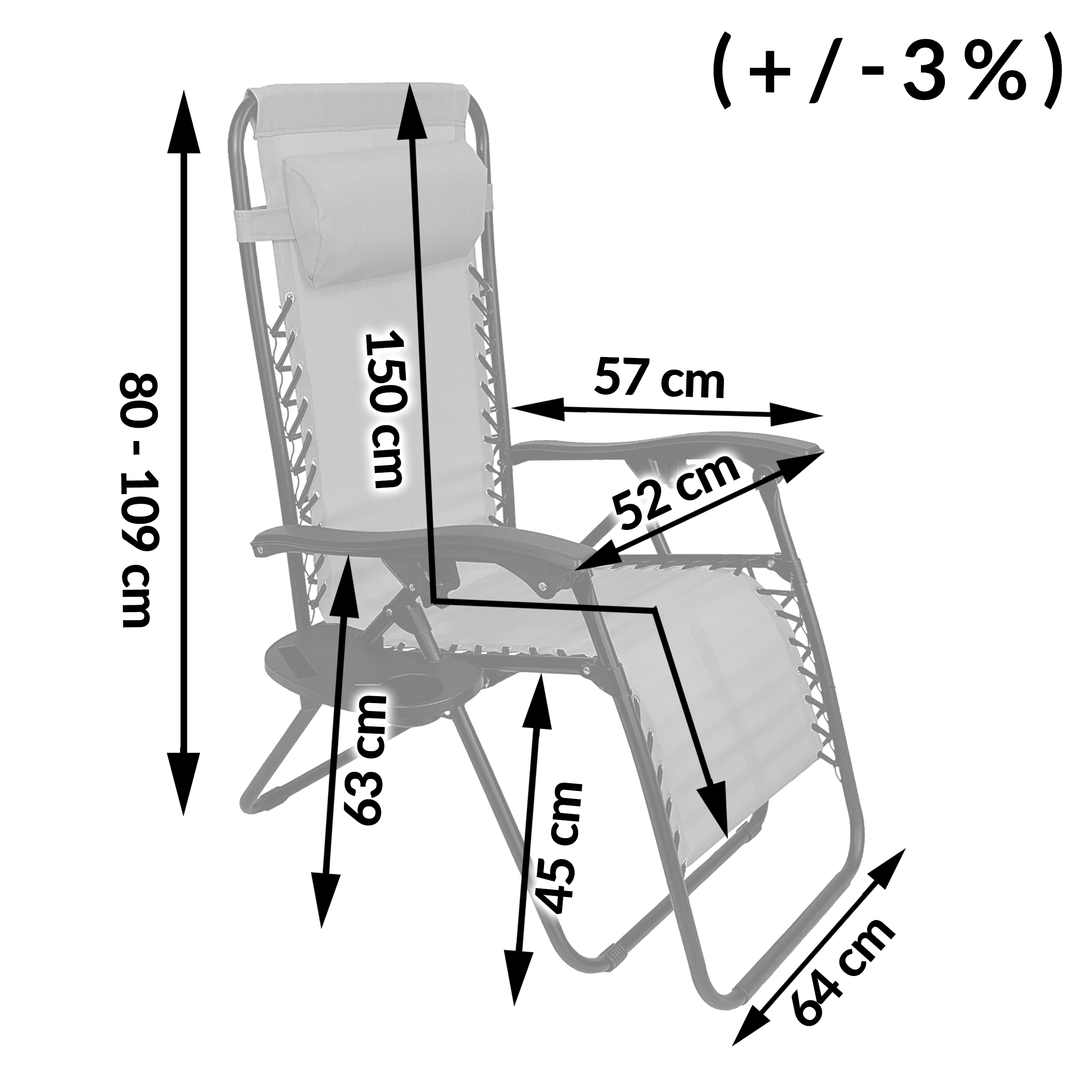 ✔️ Wysokość całkowita w pozycji półleżącej: 80 cm (+/-3%).