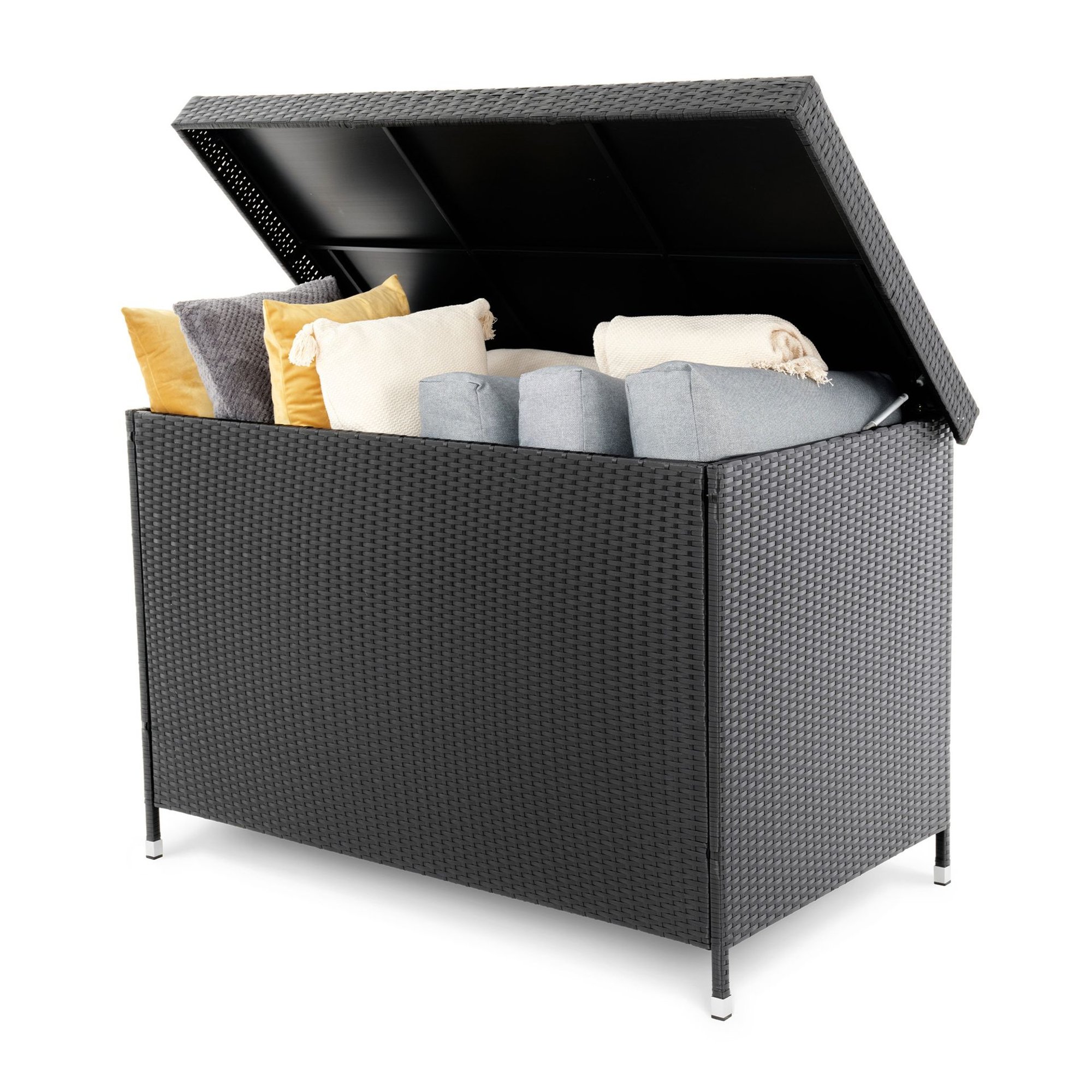 Skrzynia ogrodowa Varise to podstawowy element wyposażenia każdego ogrodu, tarasu czy balkonu. Wykonana z wysokiej jakości eko rattanu i wzmocniona stalową ramą, jest nie tylko estetyczna, ale przede wszystkim wytrzymała. Dzięki dużej pojemności aż 740 litrów pomieści wszystko, czego potrzebujesz – od poduszek i koców po narzędzia ogrodowe. Dodatkowym atutem modelu Varise jest odporność na warunki atmosferyczne, co sprawia, że przechowywane w niej przedmioty są odpowiednio zabezpieczone.