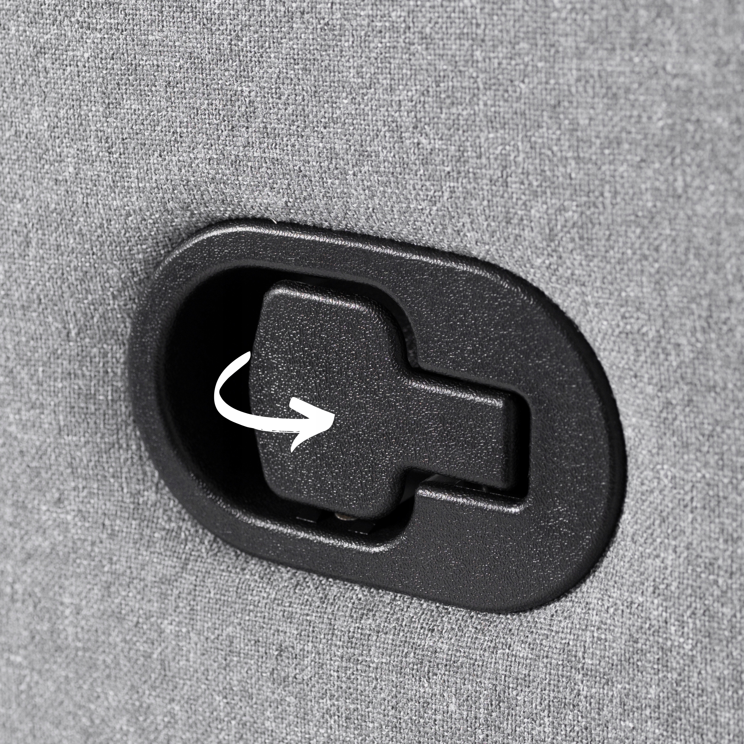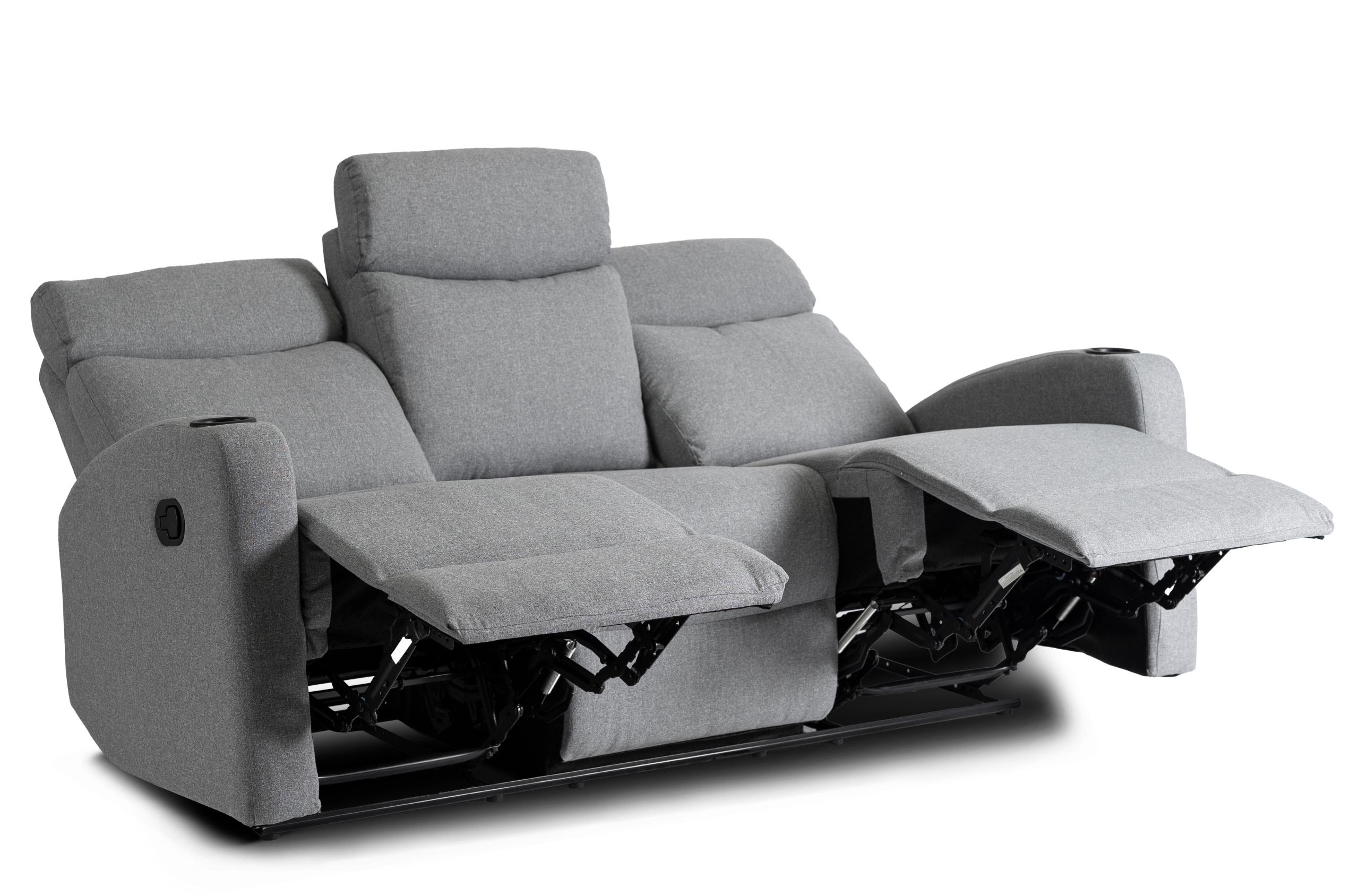 W celu rozłożenia kanapy należy pociągnąć za czarny uchwyt znajdujący się na boku podłokietnika. Spowoduje to zwolnienie blokady i uniesienie podnóżka oraz umożliwi rozłożenie oparcia poprzez opieranie się o nie plecami.