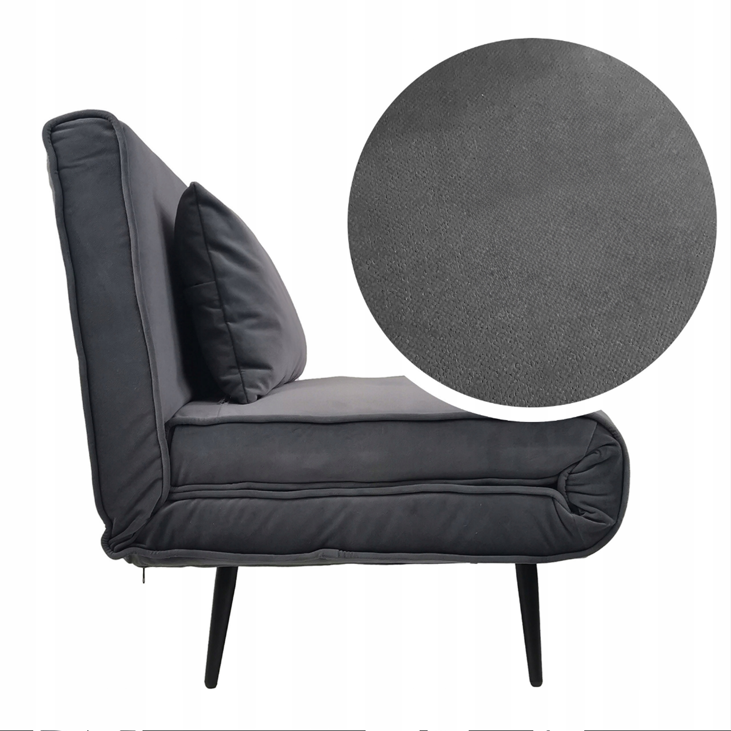 Dzięki zamontowanym stopkom fotel jest całkowicie bezpieczny dla naszej podłogi. Zaletą jest fakt, że nóżki są ruchome. W momencie gdy sofa jest złożona, można je ukryć pod zamkiem błyskawicznym.