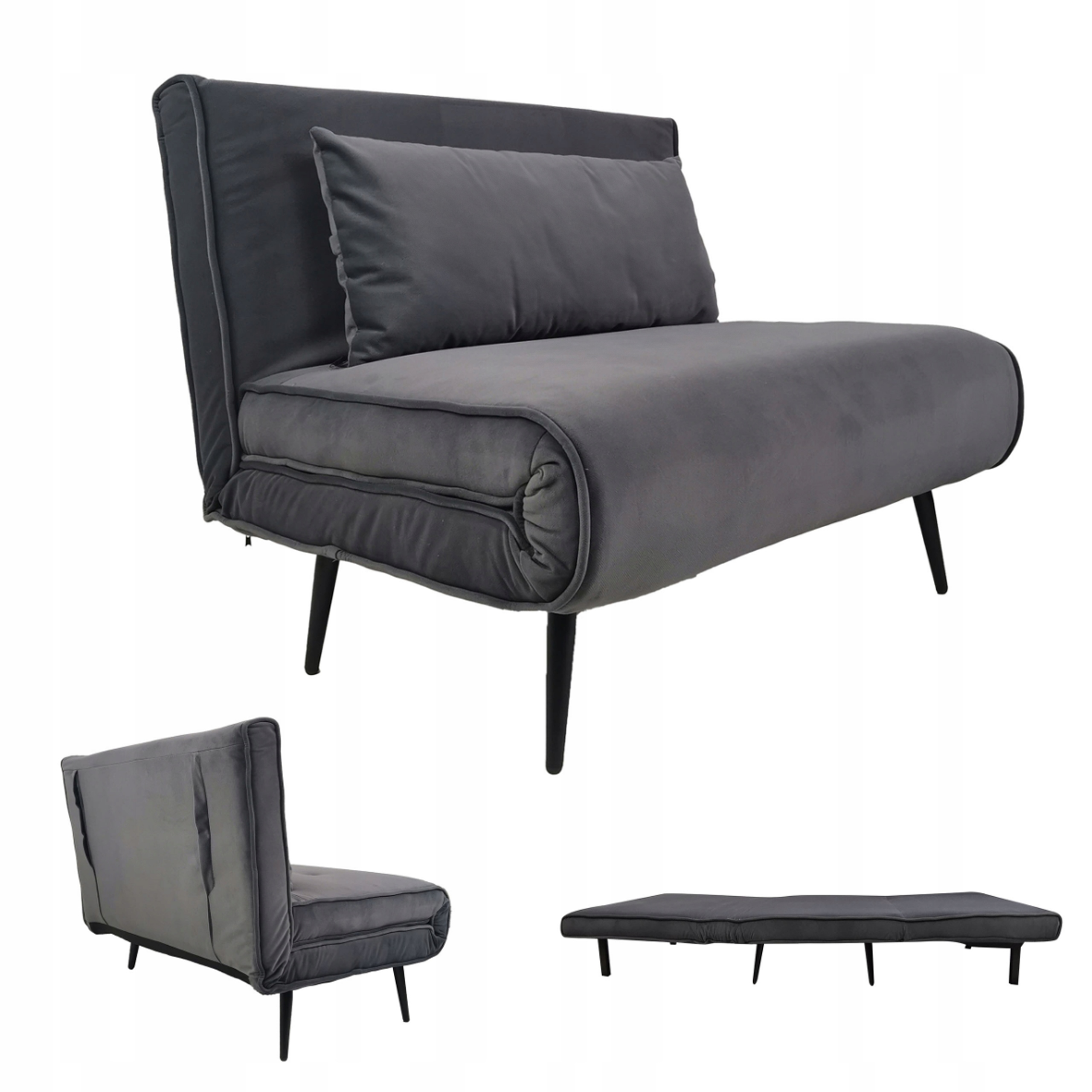 SOFA TYPU KANAPA AMERYKANKA ROZKŁADANA Z FUNKCJĄ SPANIA I Z OPARCIEM 100 CM W KOLORZE CIEMNYM SZARYM