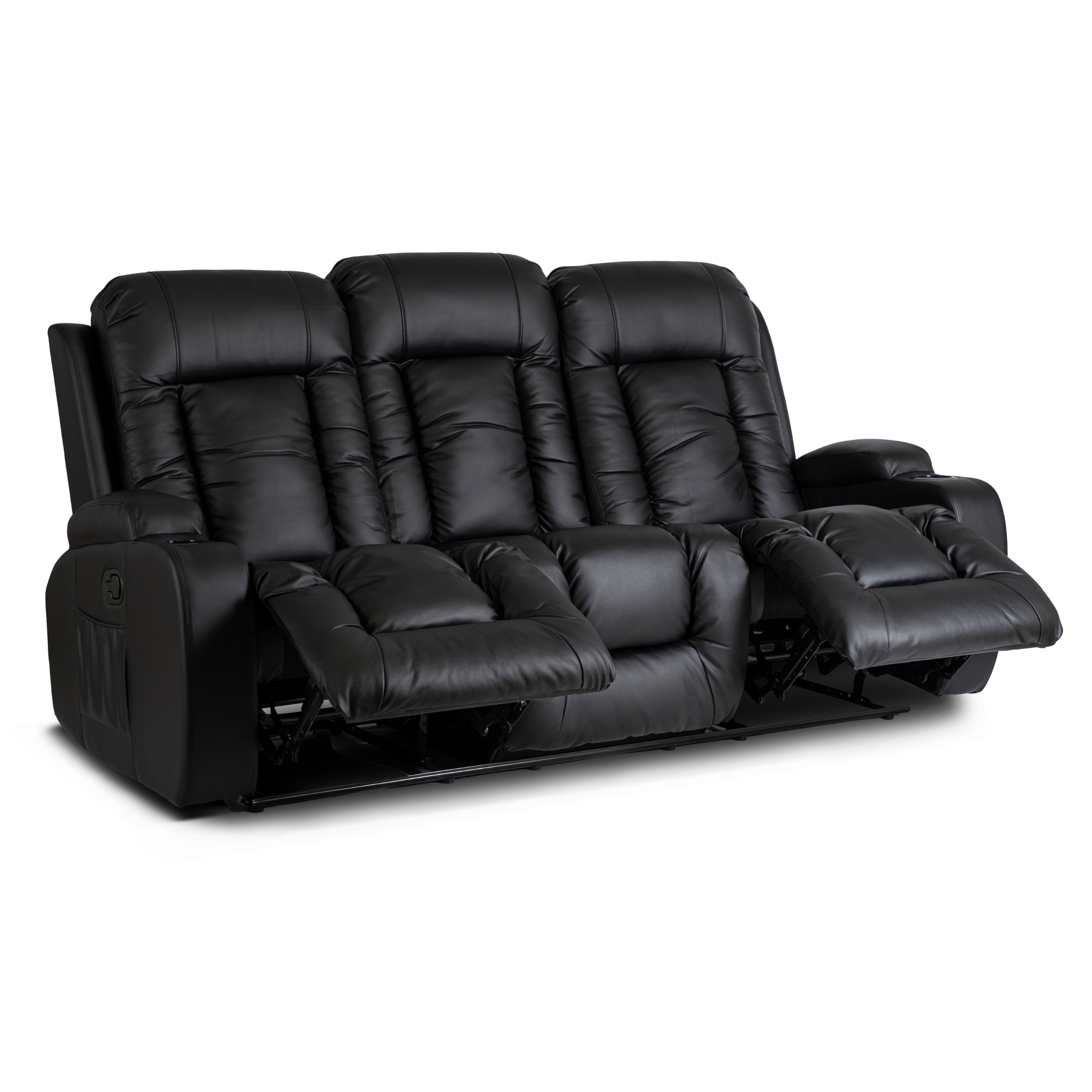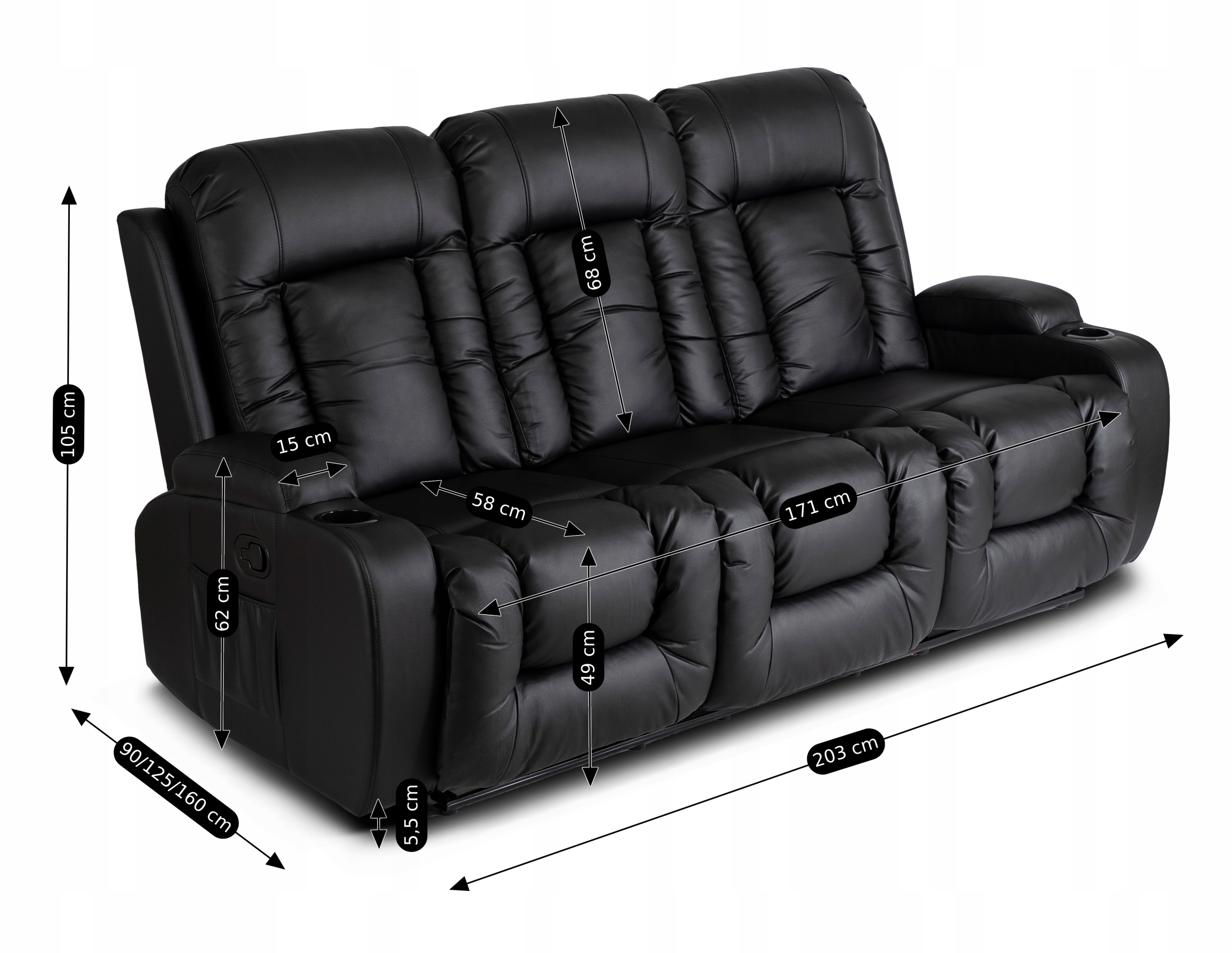 W celu rozłożenia sofy należy pociągnąć za czarny uchwyt znajdujący się podłokietniku. Spowoduje to zwolnienie blokady i uniesienie podnóżka oraz umożliwi rozłożenie oparcia poprzez opieranie się o nie plecami.