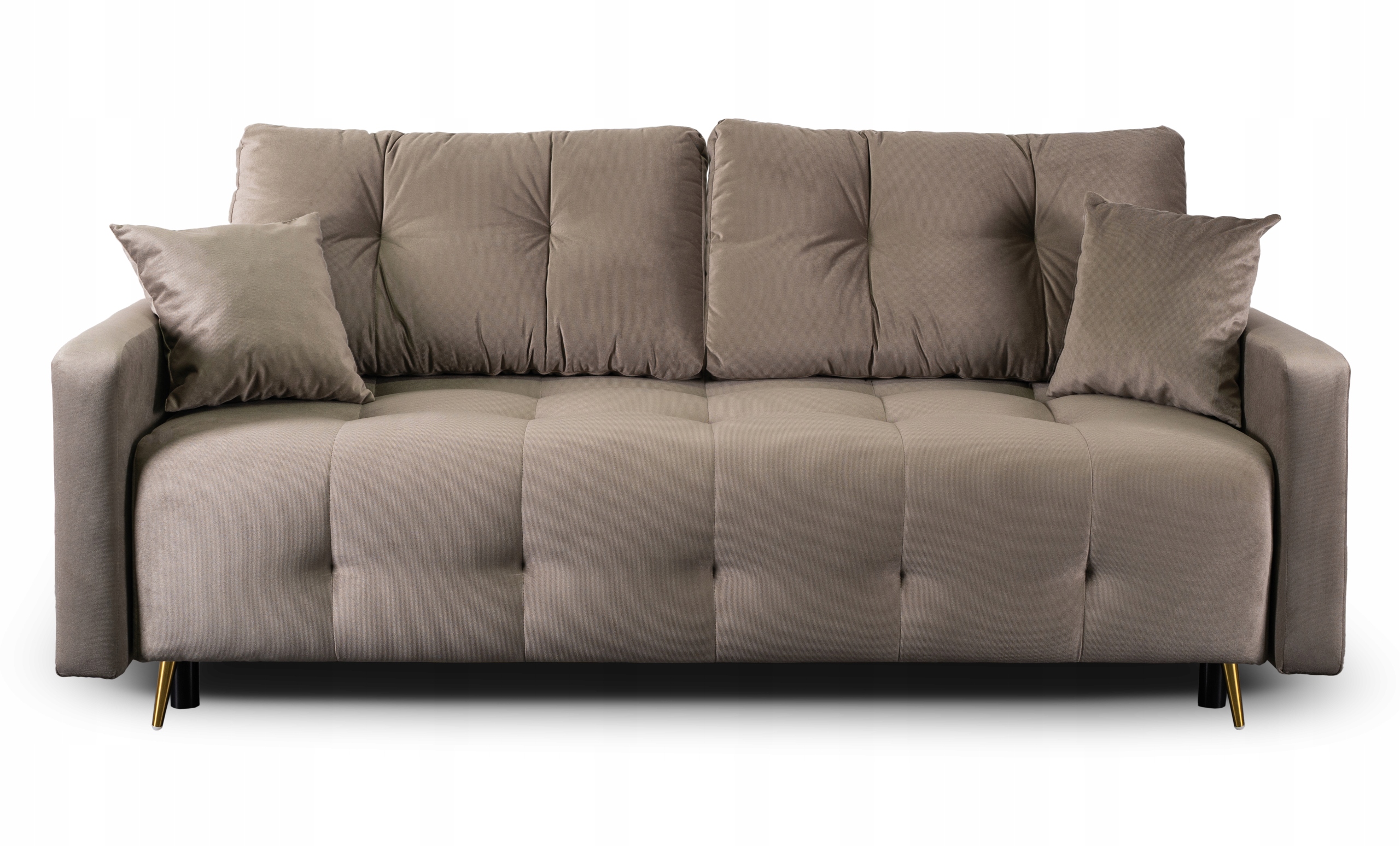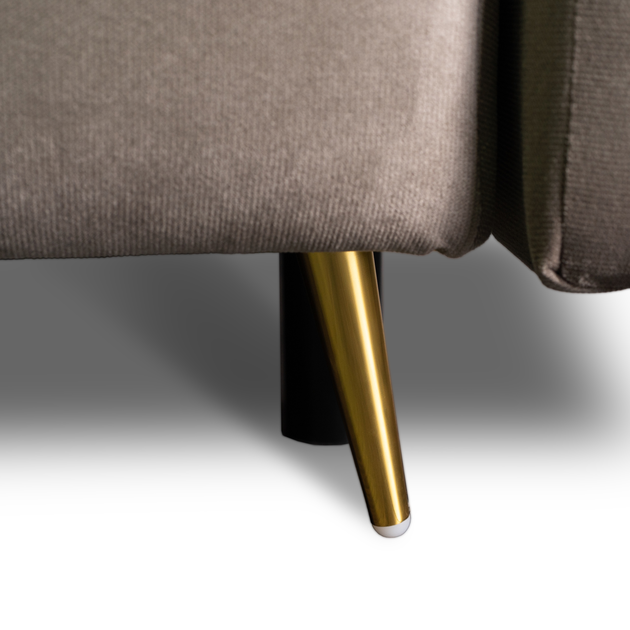 Złote nóżki kanapy to stylowy element, który dodaje jej nowoczesnego charakteru. Zapewniają stabilność i trwałość jednocześnie nadając meblowi lekkiego, eleganckiego wyglądu.