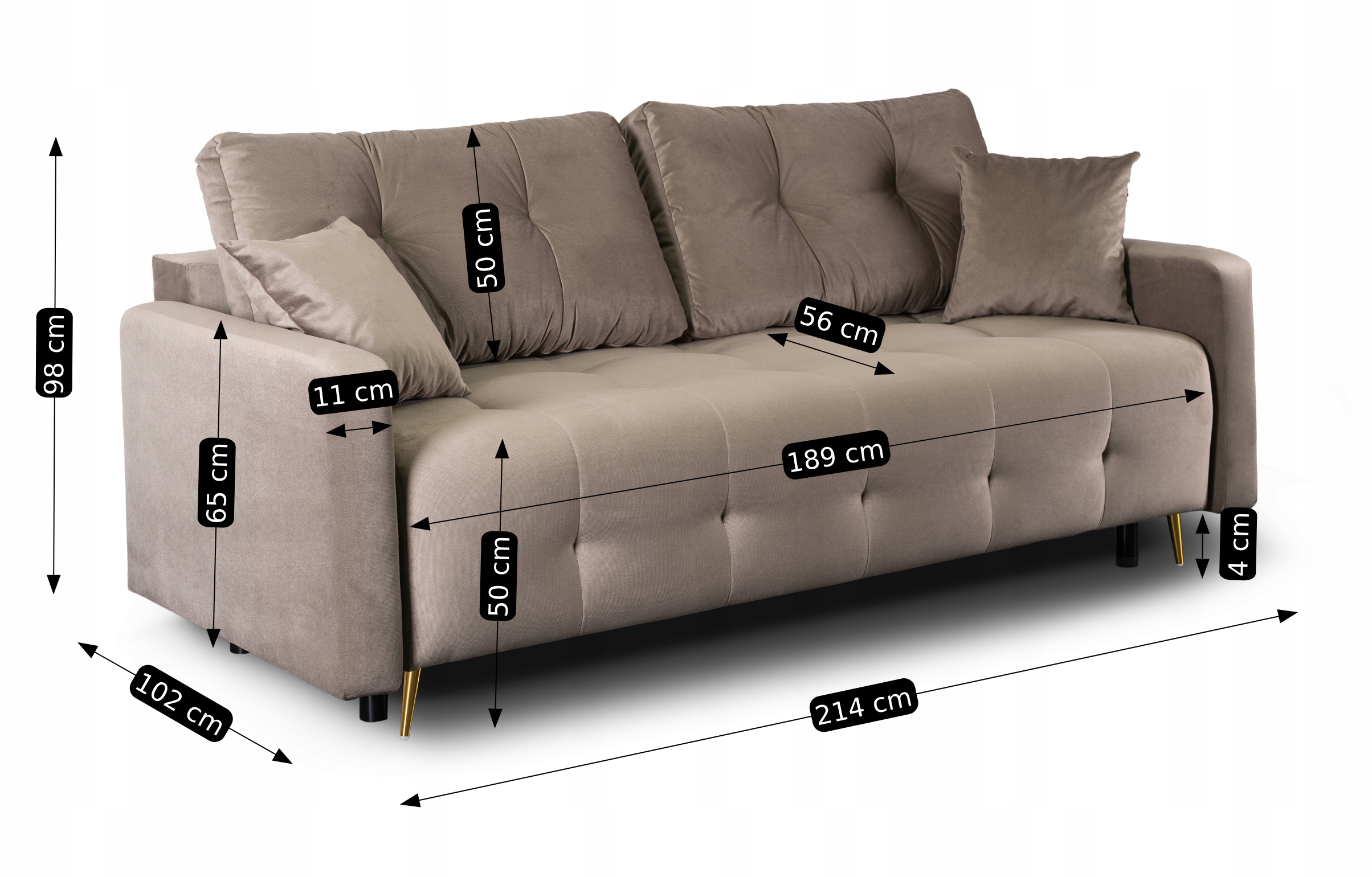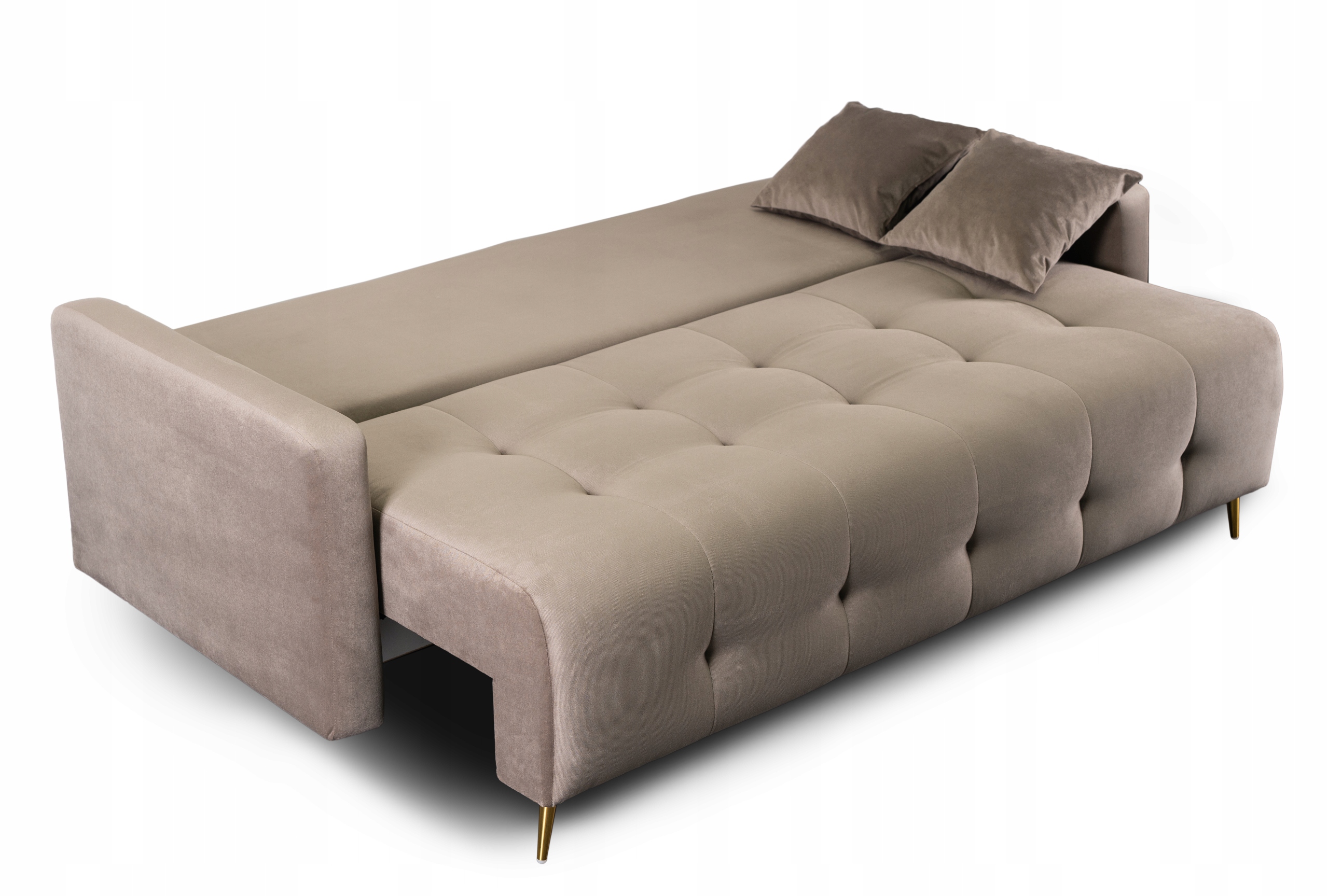 Jedną z głównych zalet kanapy jest funkcja spania, która pozwala na szybkie przekształcenie jej w przestronne łóżko o wymiarach 190x150 cm.