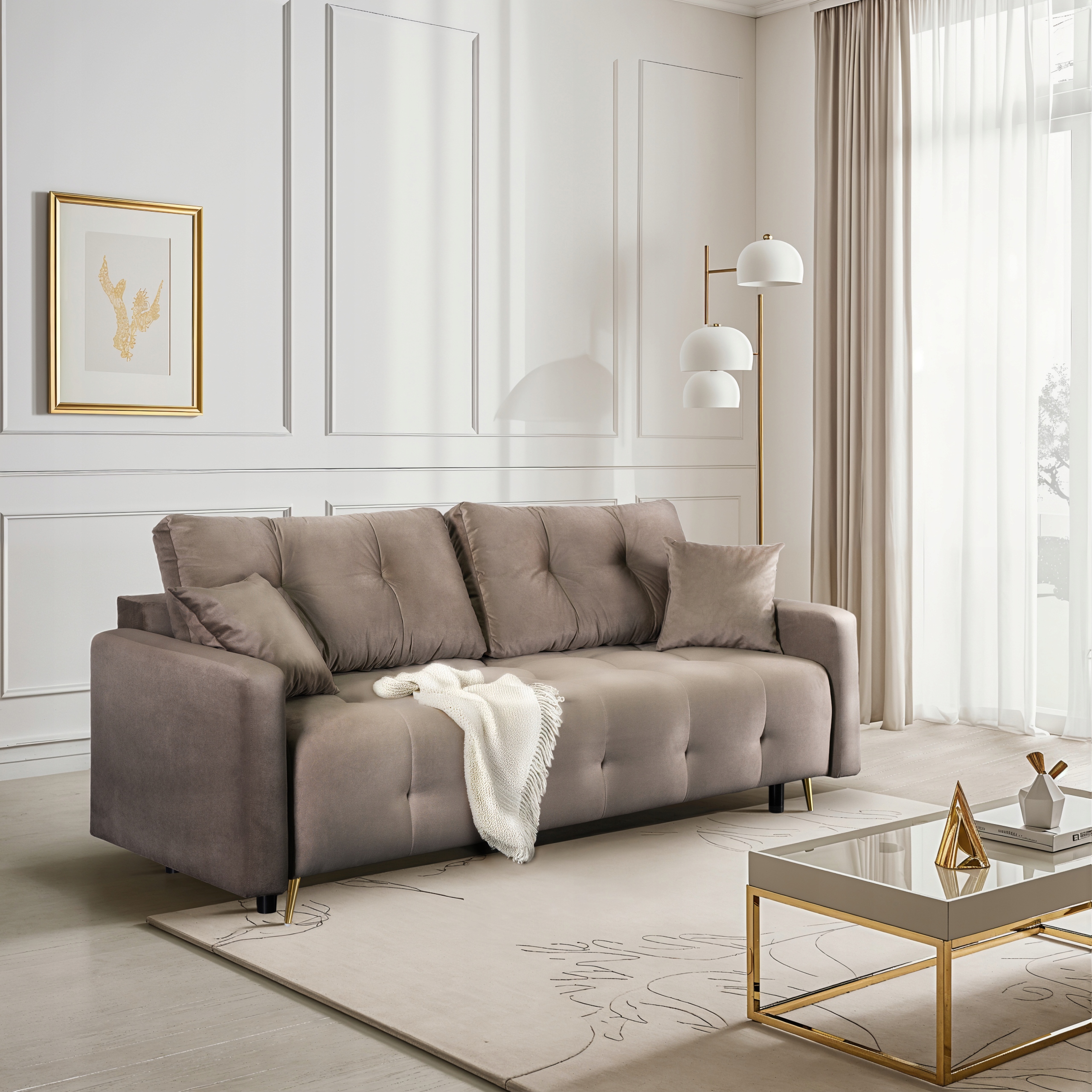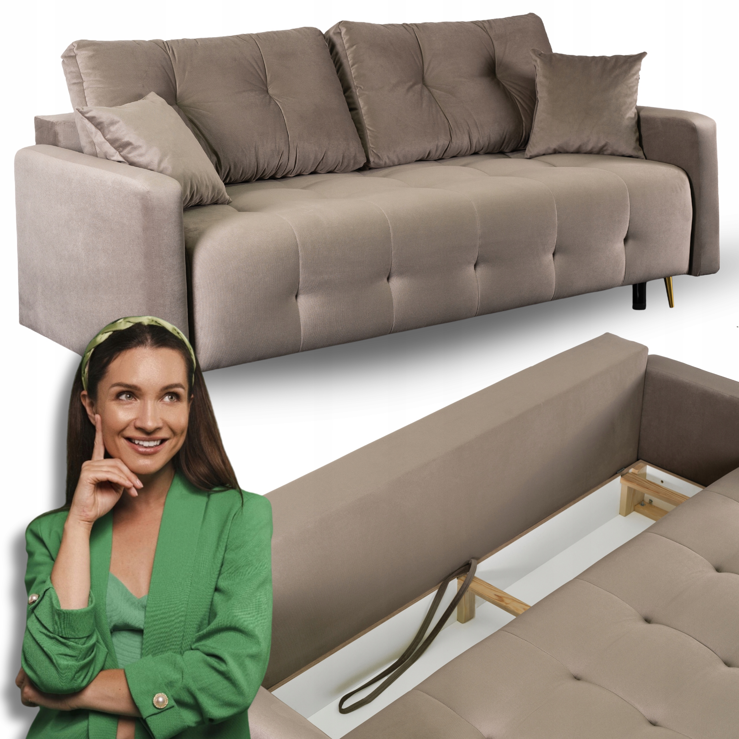 Sofa Rozkładana Kanapa Z Funkcją Spania Wersalka Dwuosobowa Beżowa SEUL ⭐⭐⭐⭐⭐