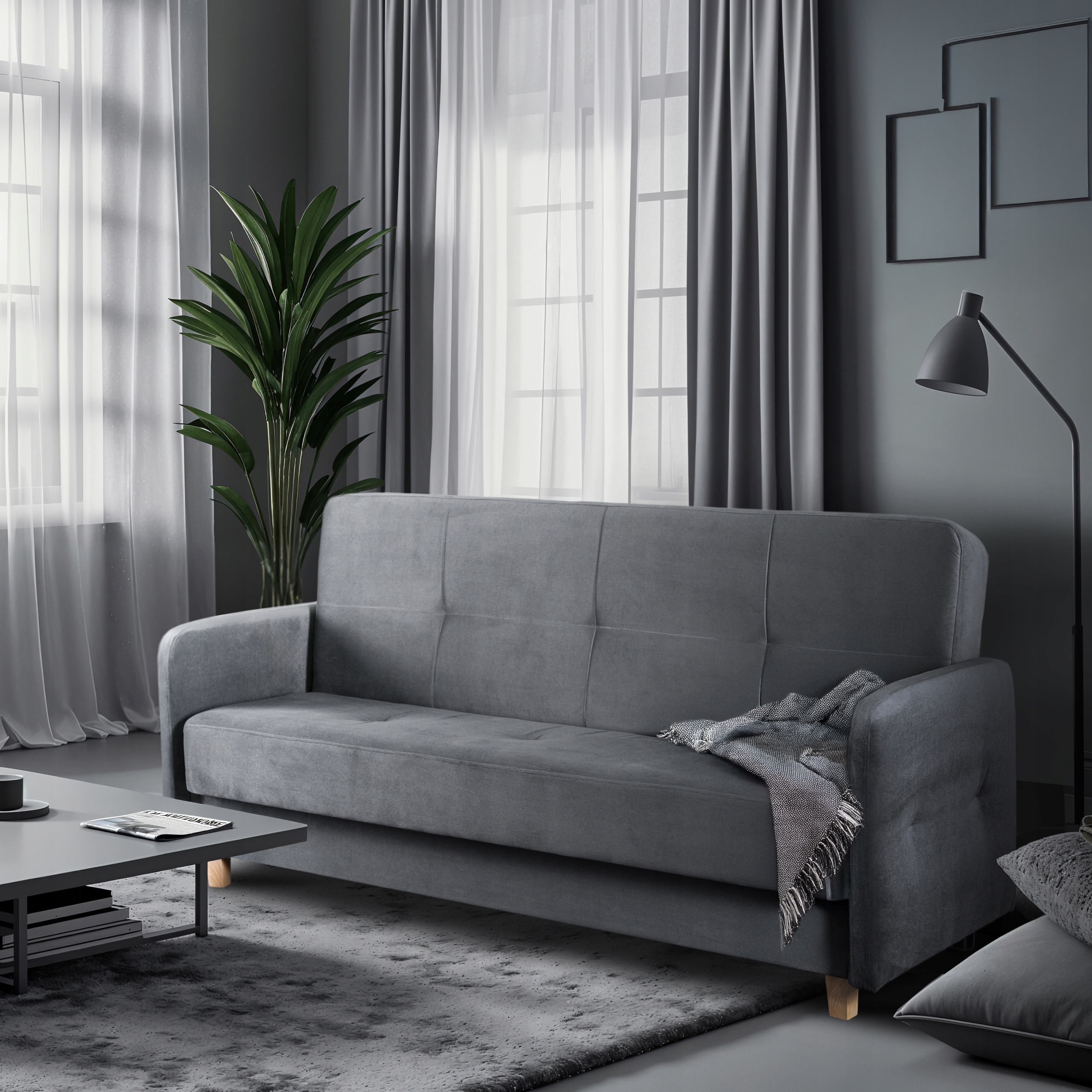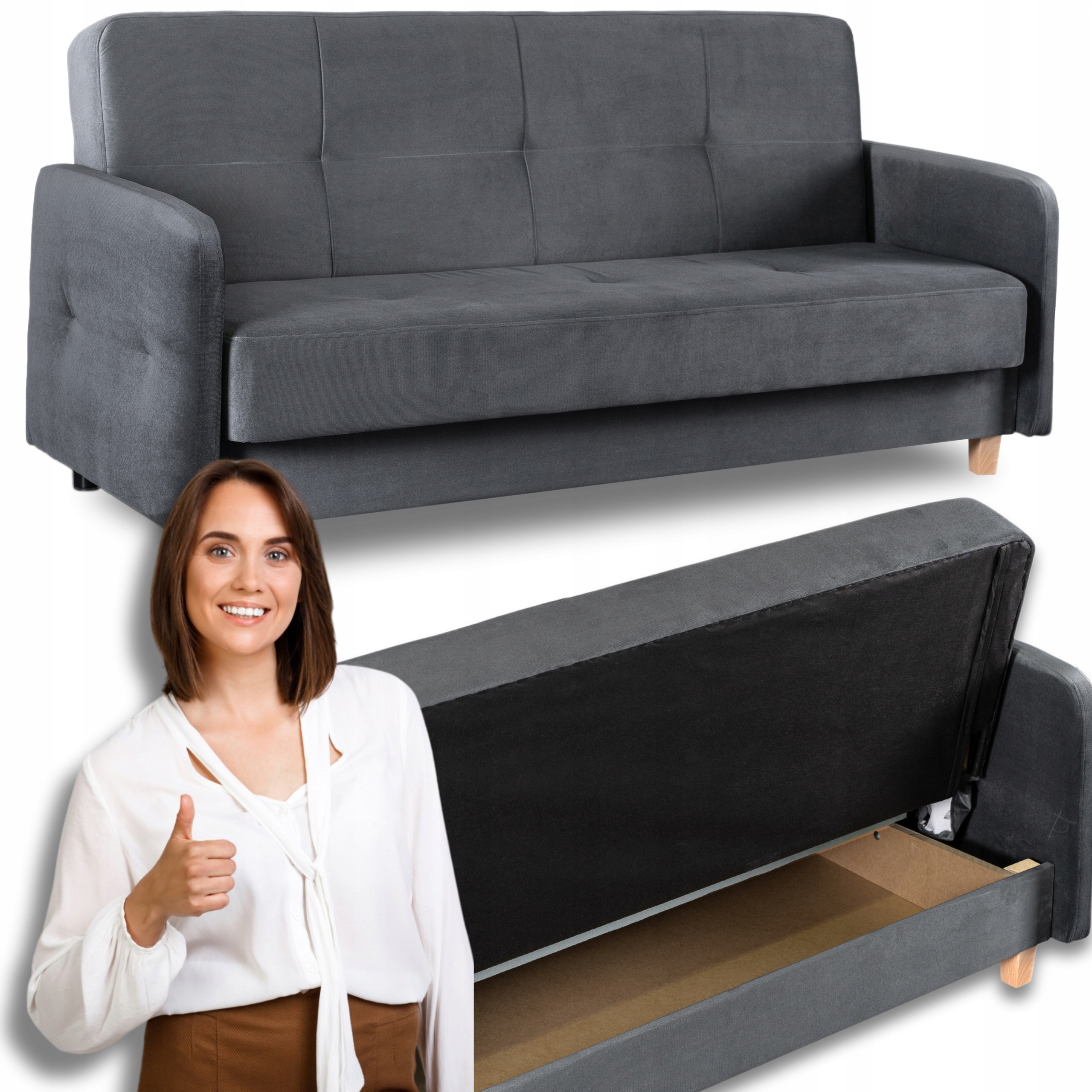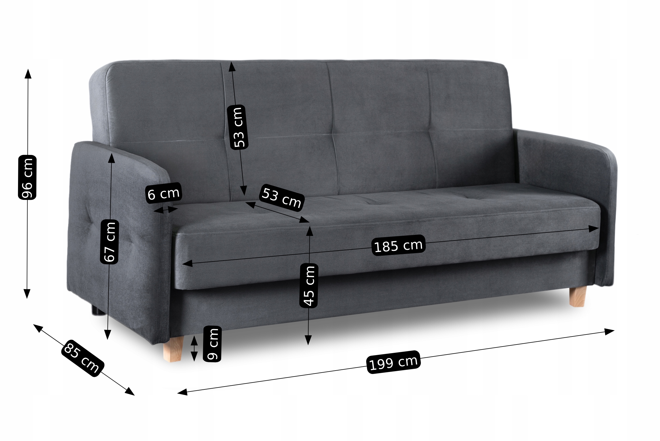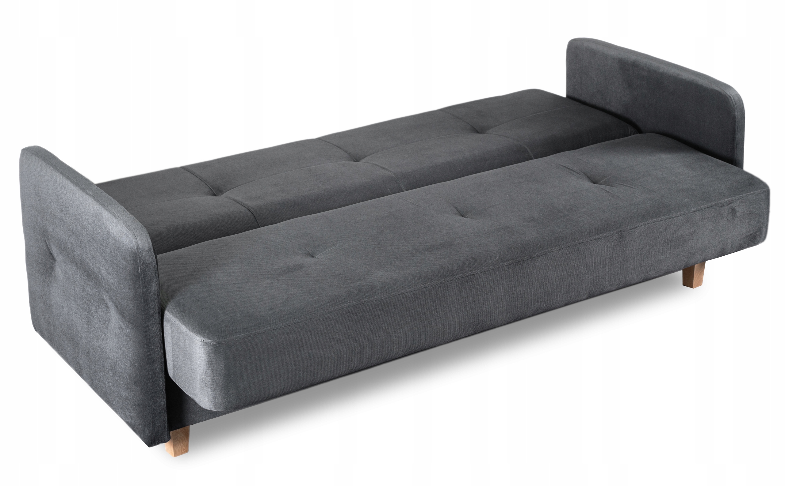 Jedną z głównych zalet kanapy jest funkcja spania, która pozwala na szybkie przekształcenie jej w przestronne łóżko o wymiarach 186x115 cm.