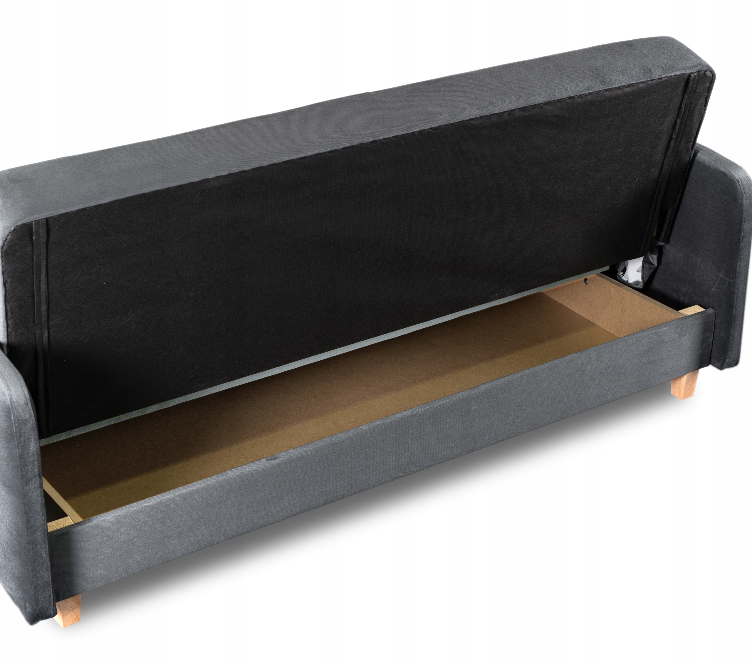 Wersalka ma praktyczny pojemnik, który sprawdzi się jako dodatkowe miejsce do przechowywania. Idealnie pomieści pościel, koce czy poduszki.