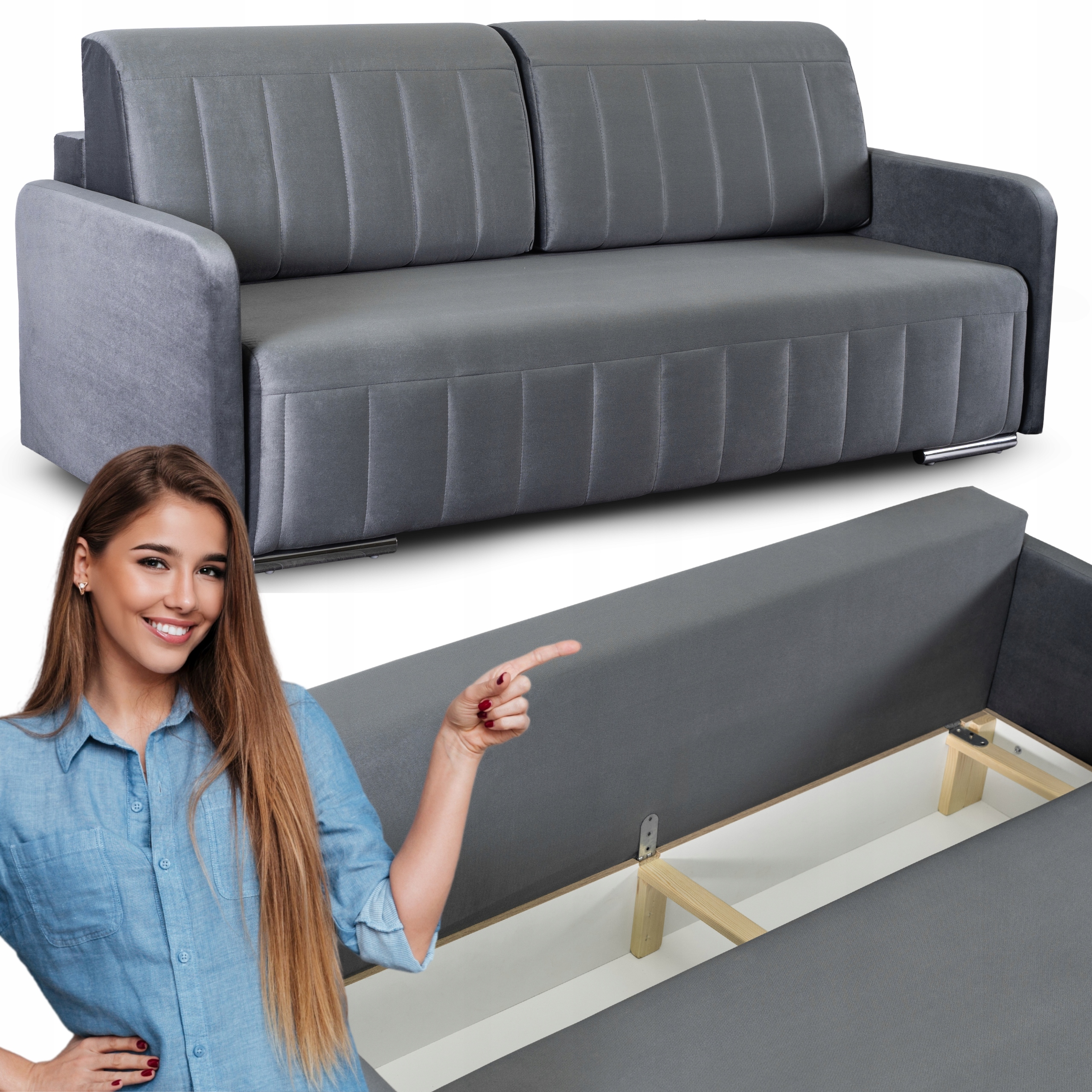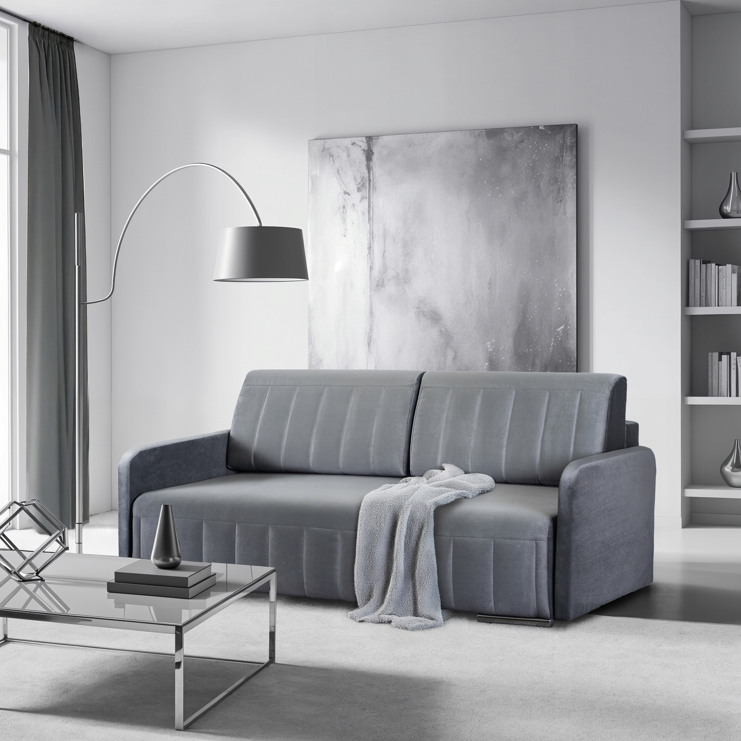 Sofa Rozkładana Kanapa Z Funkcją Spania Wersalka Dwuosobowa Szara LUMO ⭐⭐⭐⭐⭐