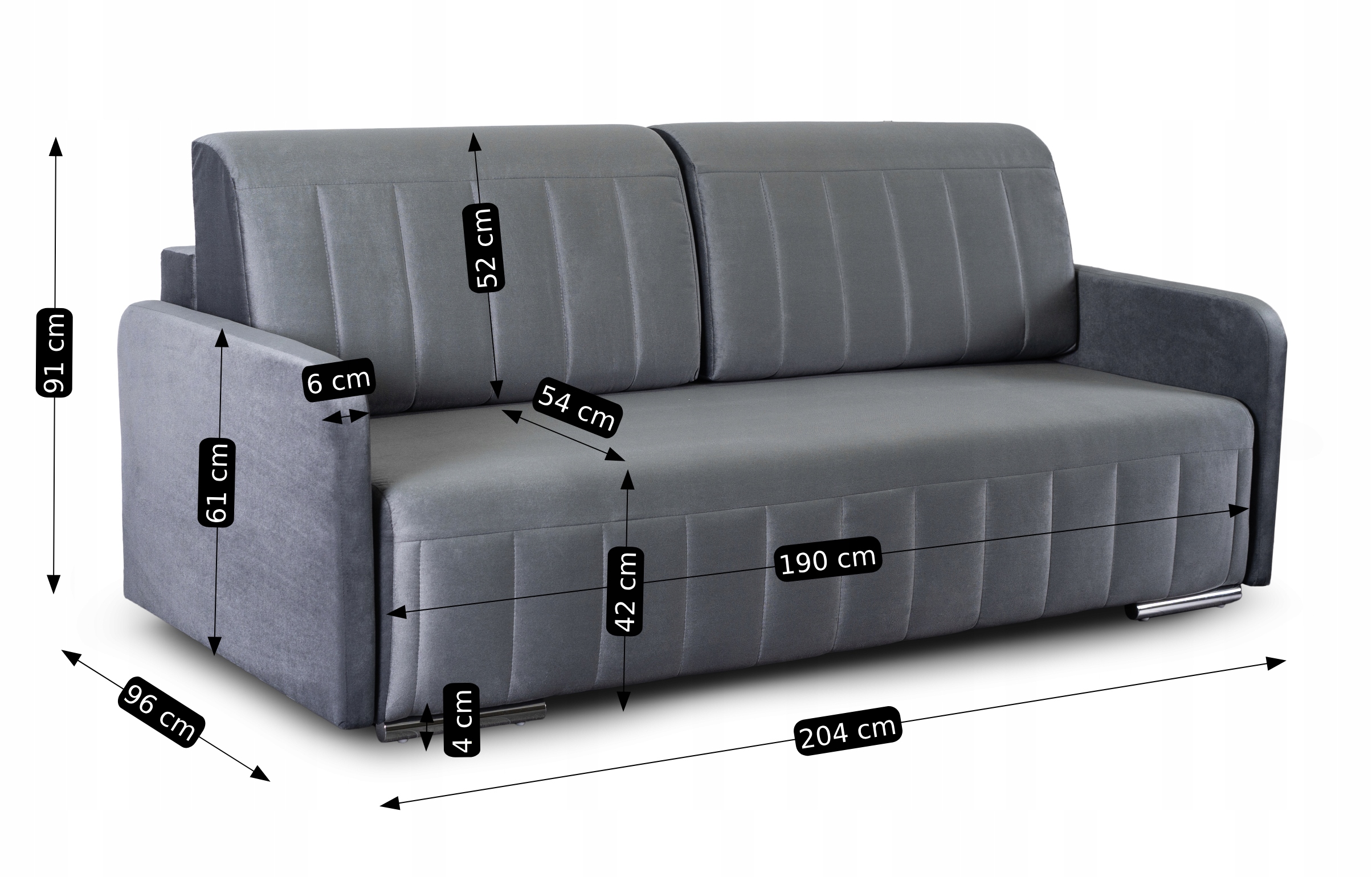Jedną z głównych zalet kanapy jest funkcja spania, która pozwala na szybkie przekształcenie jej w przestronne łóżko o wymiarach 190x147 cm.