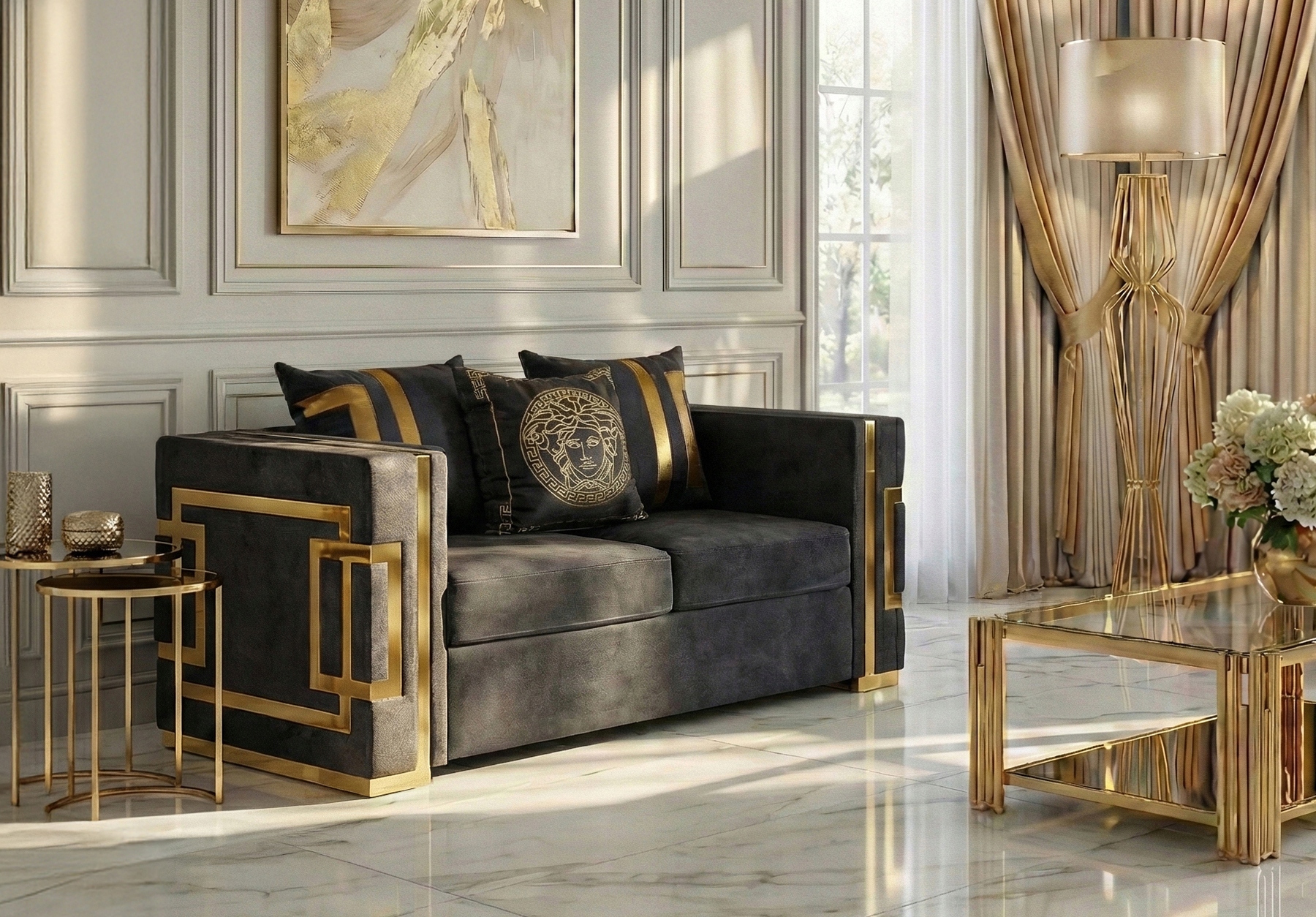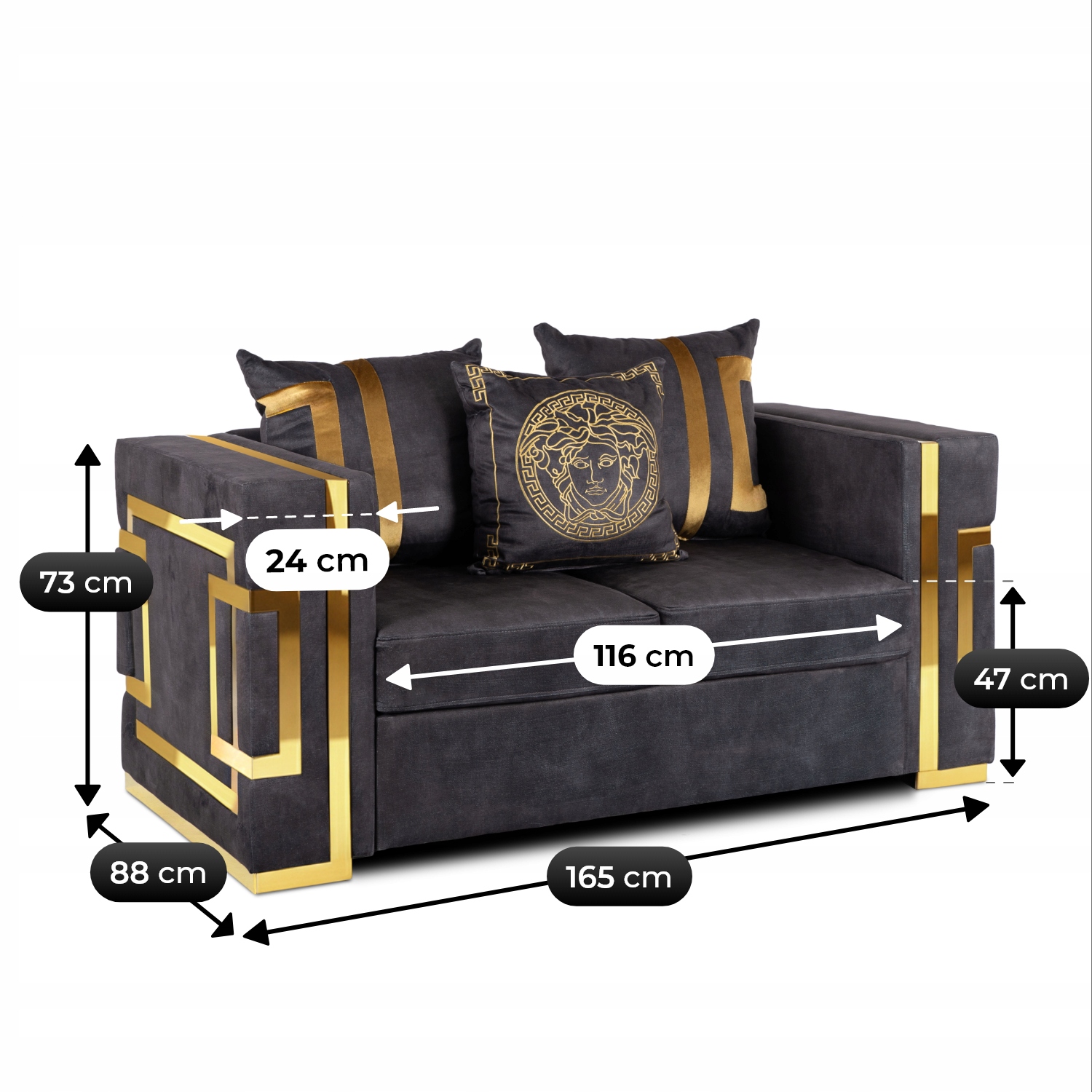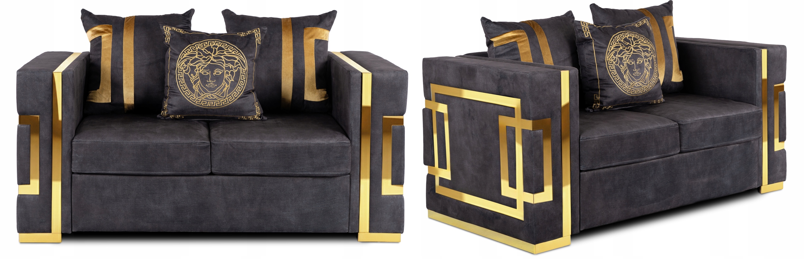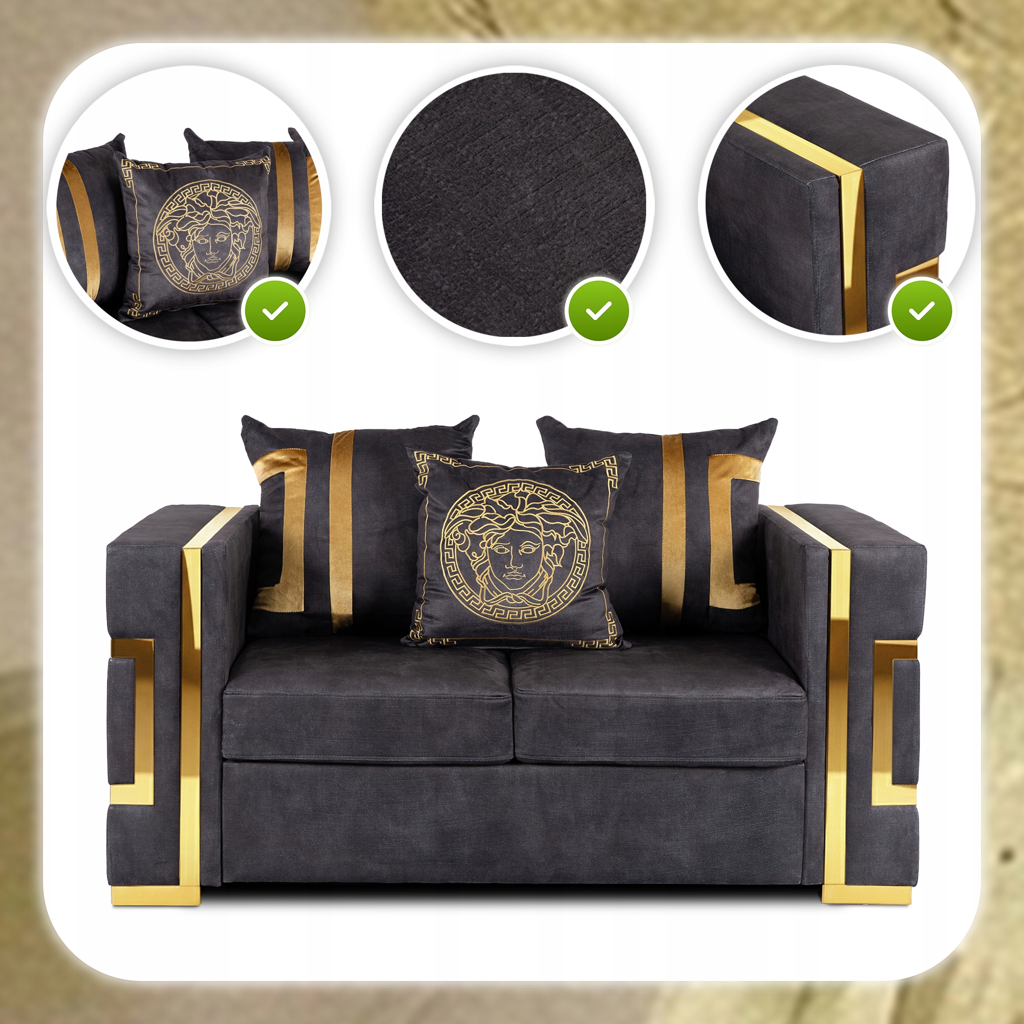 ✨ Kanapa Sofa Glamour Dwuosobowa Do Salonu Czarna Złota PALLAZO 2S