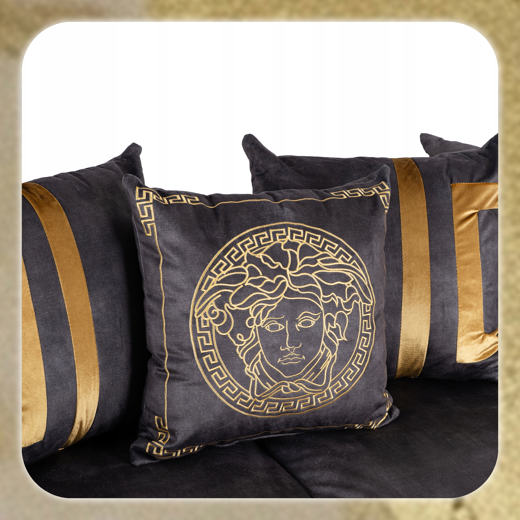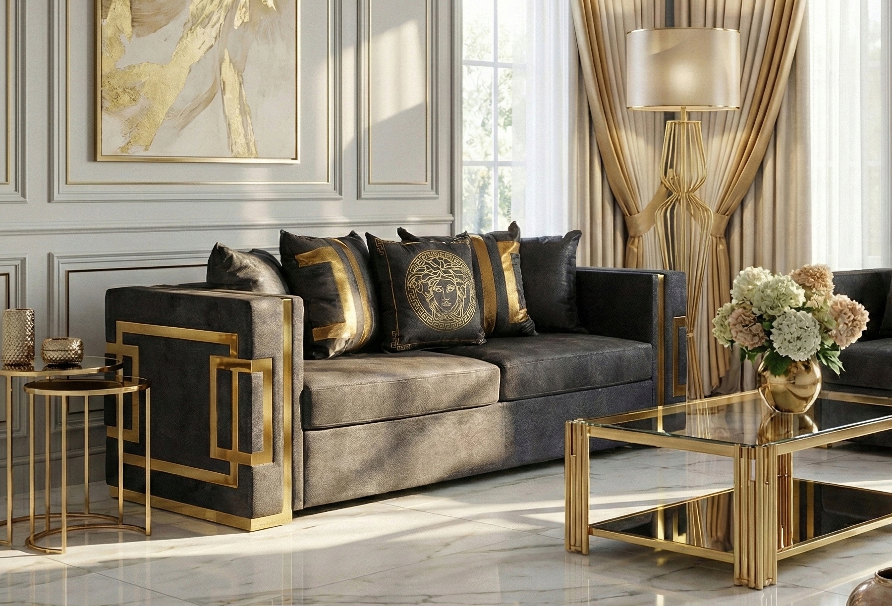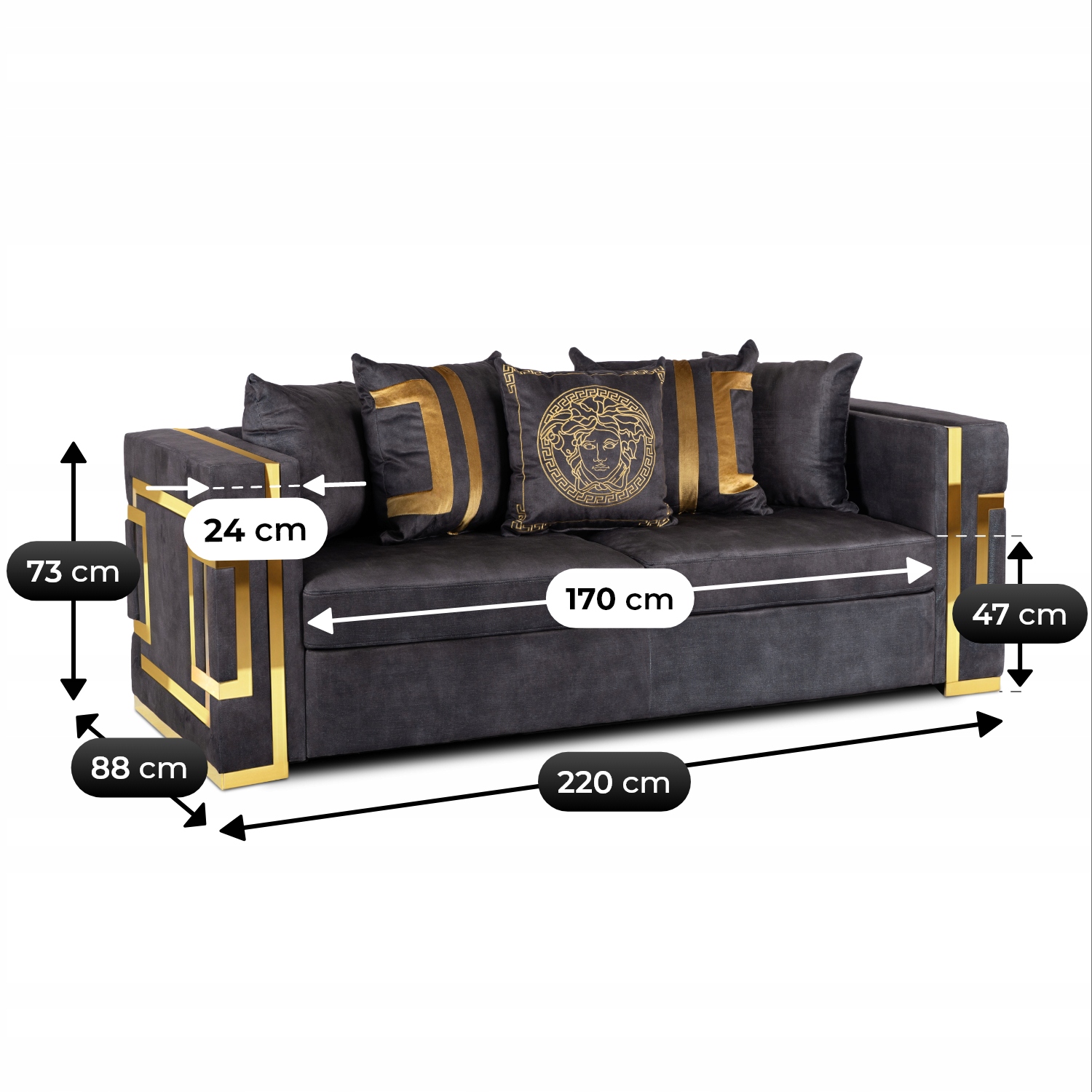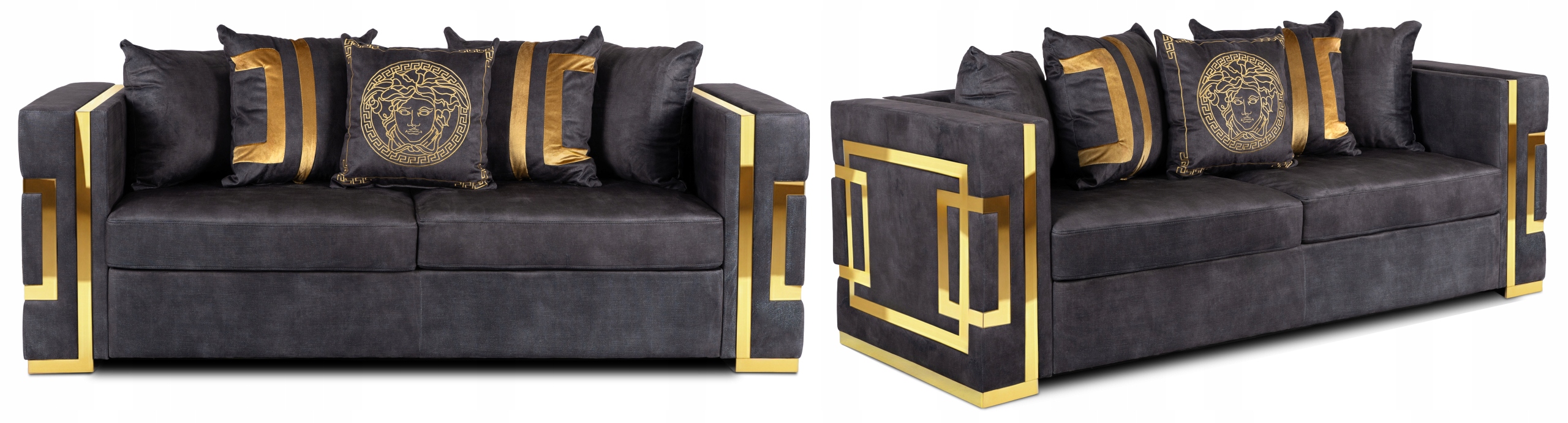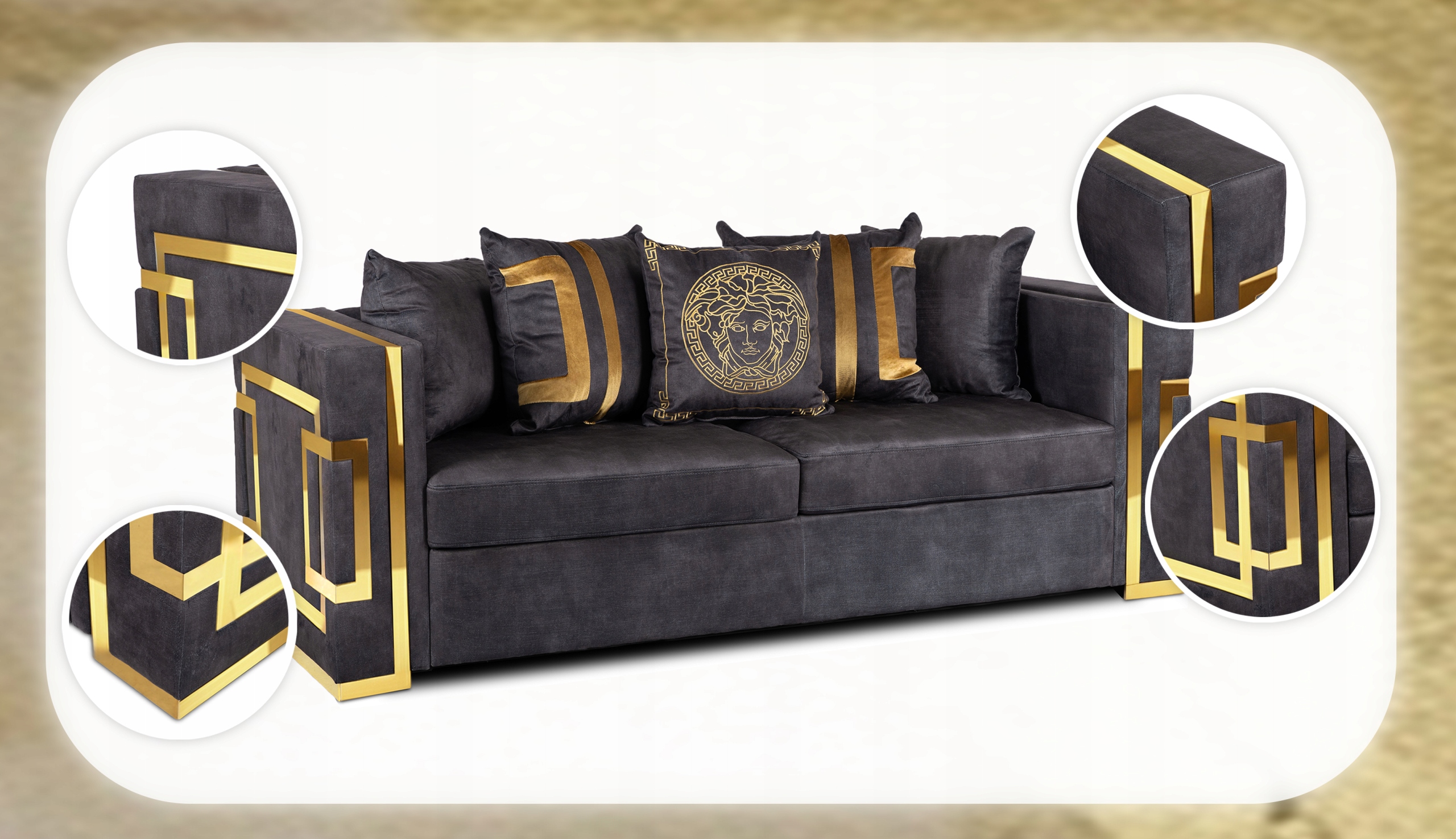 ✨ Kanapa Sofa Glamour Trzyosobowa Do Salonu Czarna Złota PALLAZO 3S