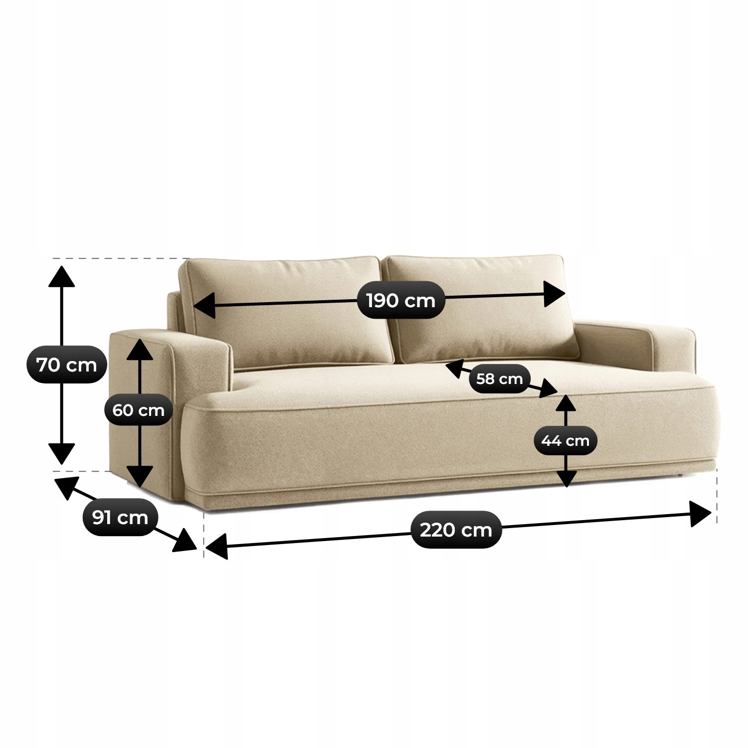 Sofa CAMELIA o wymiarach 220 x 91 x 70 cm to elegancki i funkcjonalny mebel, który doskonale sprawdzi się w salonie lub pokoju gościnnym. Jej nowoczesna forma oraz modny, beżowy kolor świetnie wpisują się w aktualne trendy wnętrzarskie, pasując zarówno do aranżacji minimalistycznych, jak i soft modern.