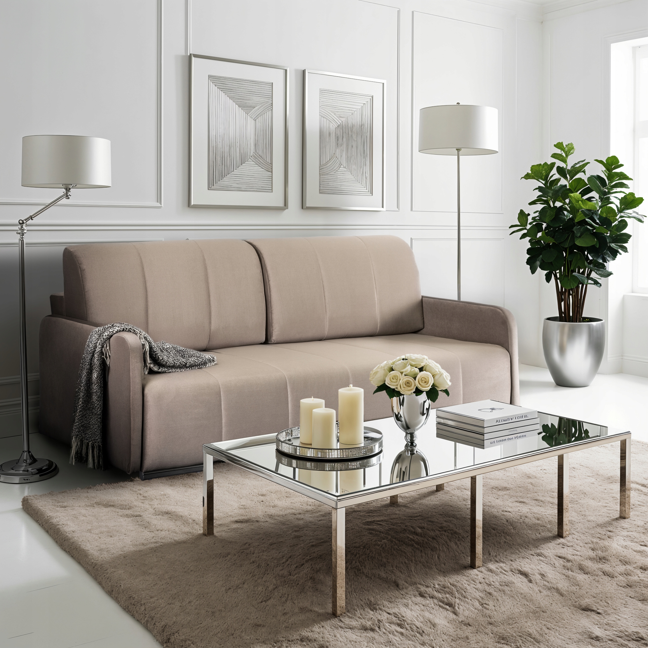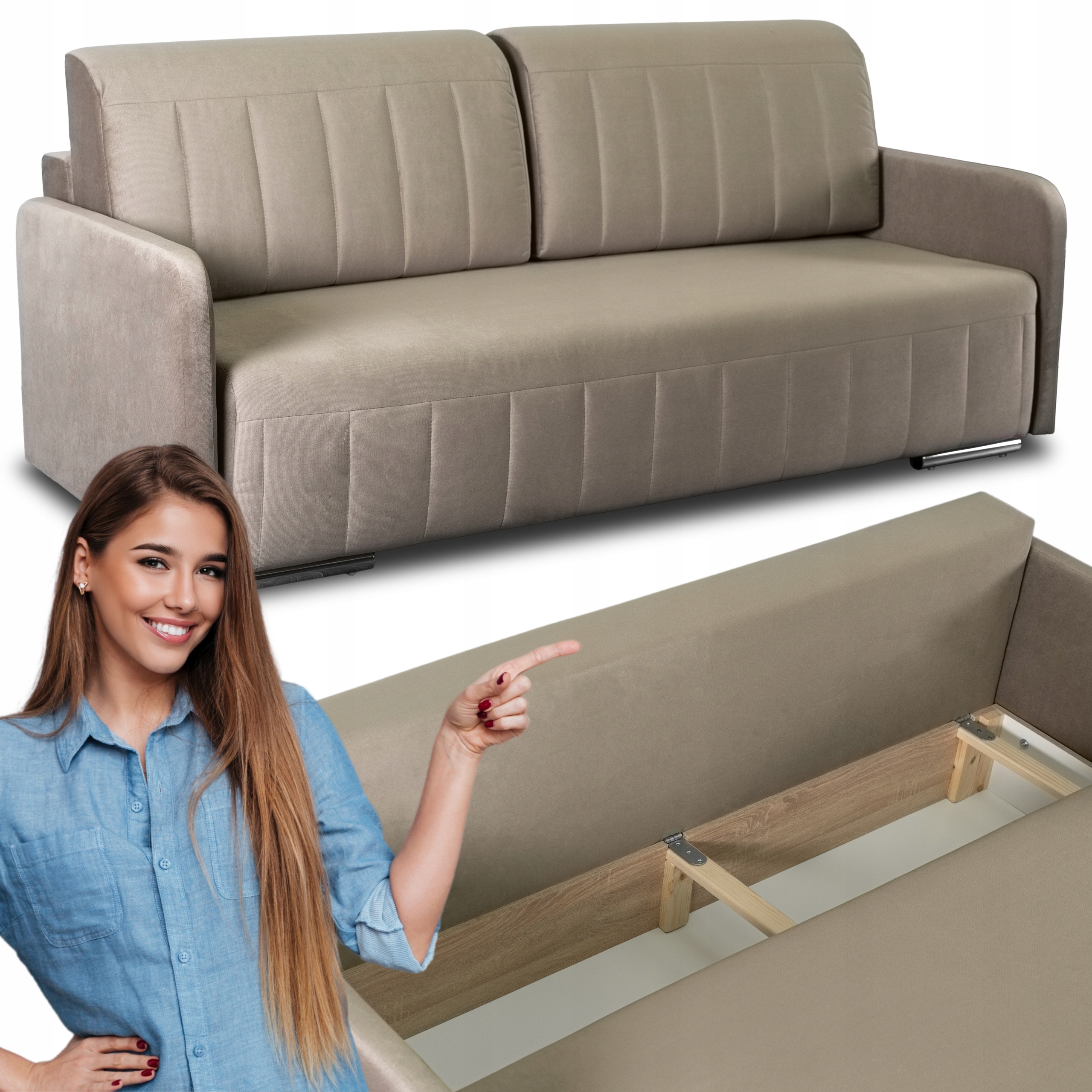 Sofa Rozkładana Kanapa Z Funkcją Spania Wersalka Dwuosobowa Beżowa LUMO ⭐⭐⭐⭐⭐